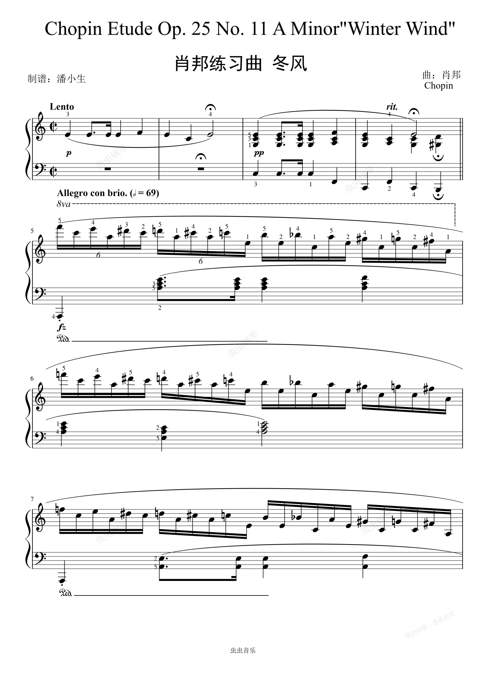钢琴谱:肖邦 冬风 练习曲 带指法 Op.25 No.11 Winter Wind 高清原版重制