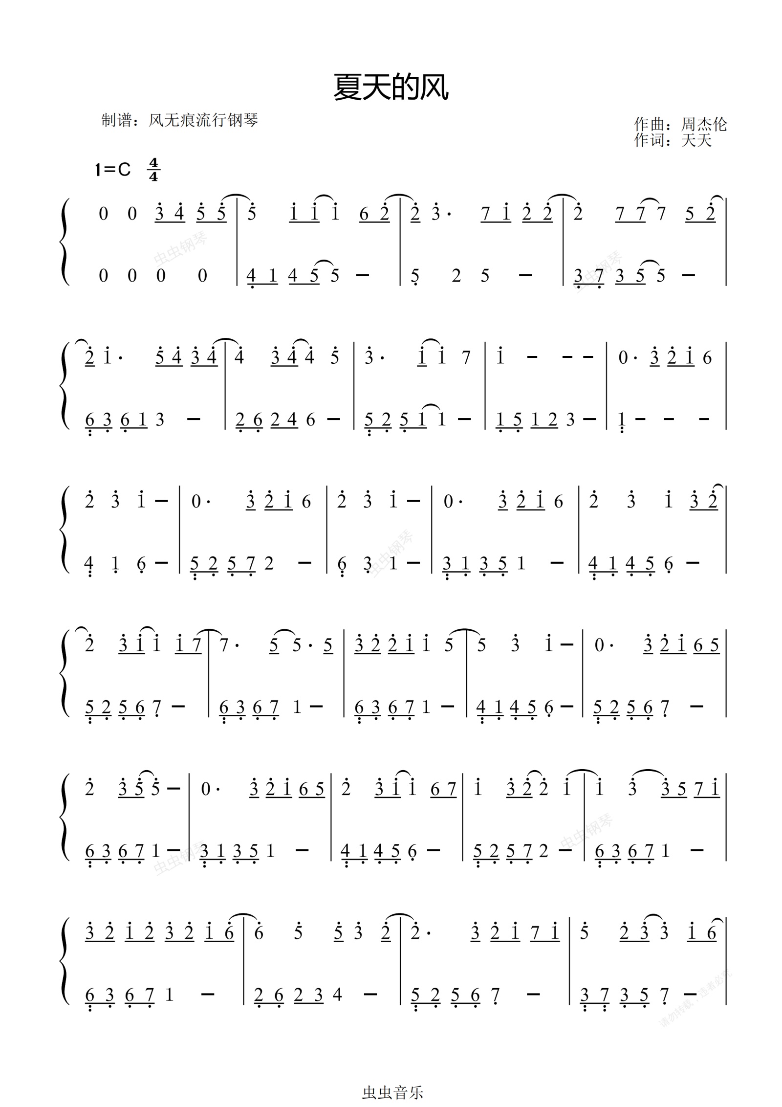 钢琴谱:夏天的风-温岚〖数字简谱〗