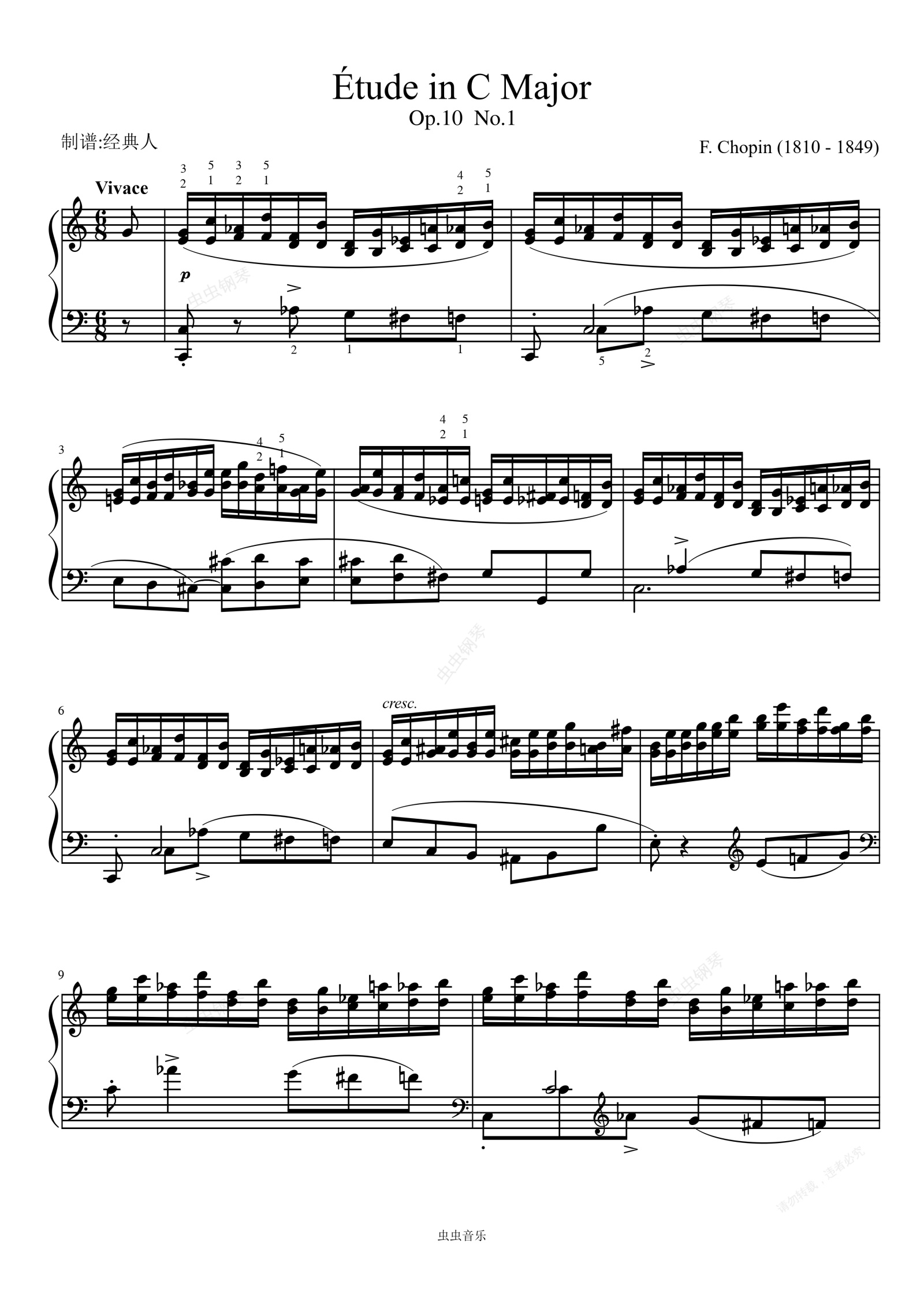 钢琴谱:Etudes, Op.10 No.7 in C-Chopin 肖邦练习曲 肖邦降C大调练习曲 作品10第七首(第七号)Toccata