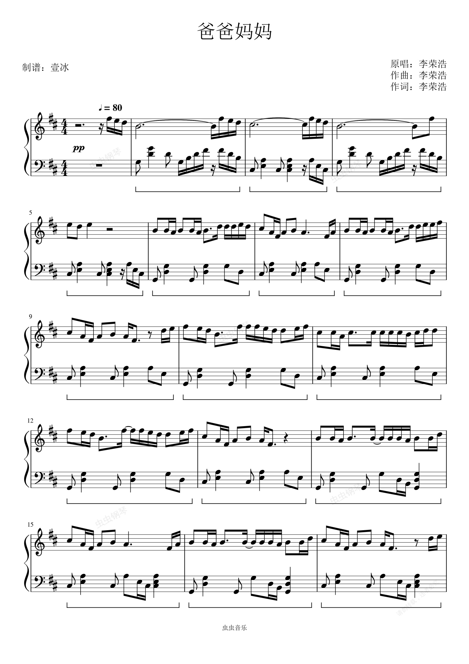 钢琴谱:爸爸妈妈//李荣浩-壹冰钢琴版