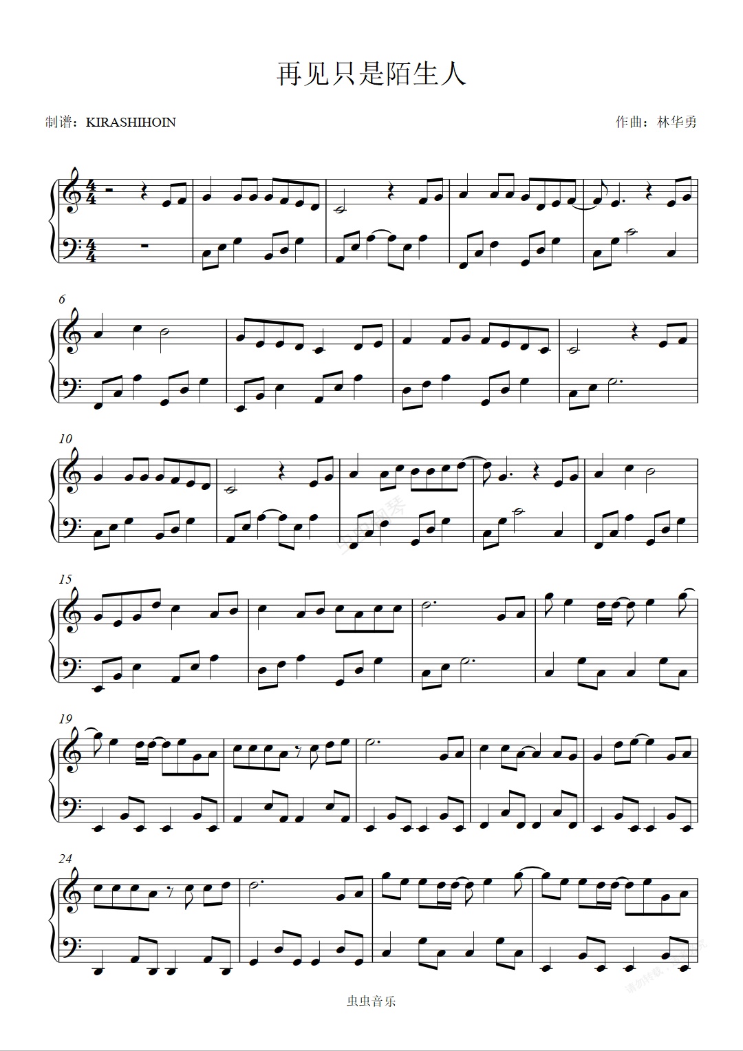钢琴谱:再见只是陌生人
