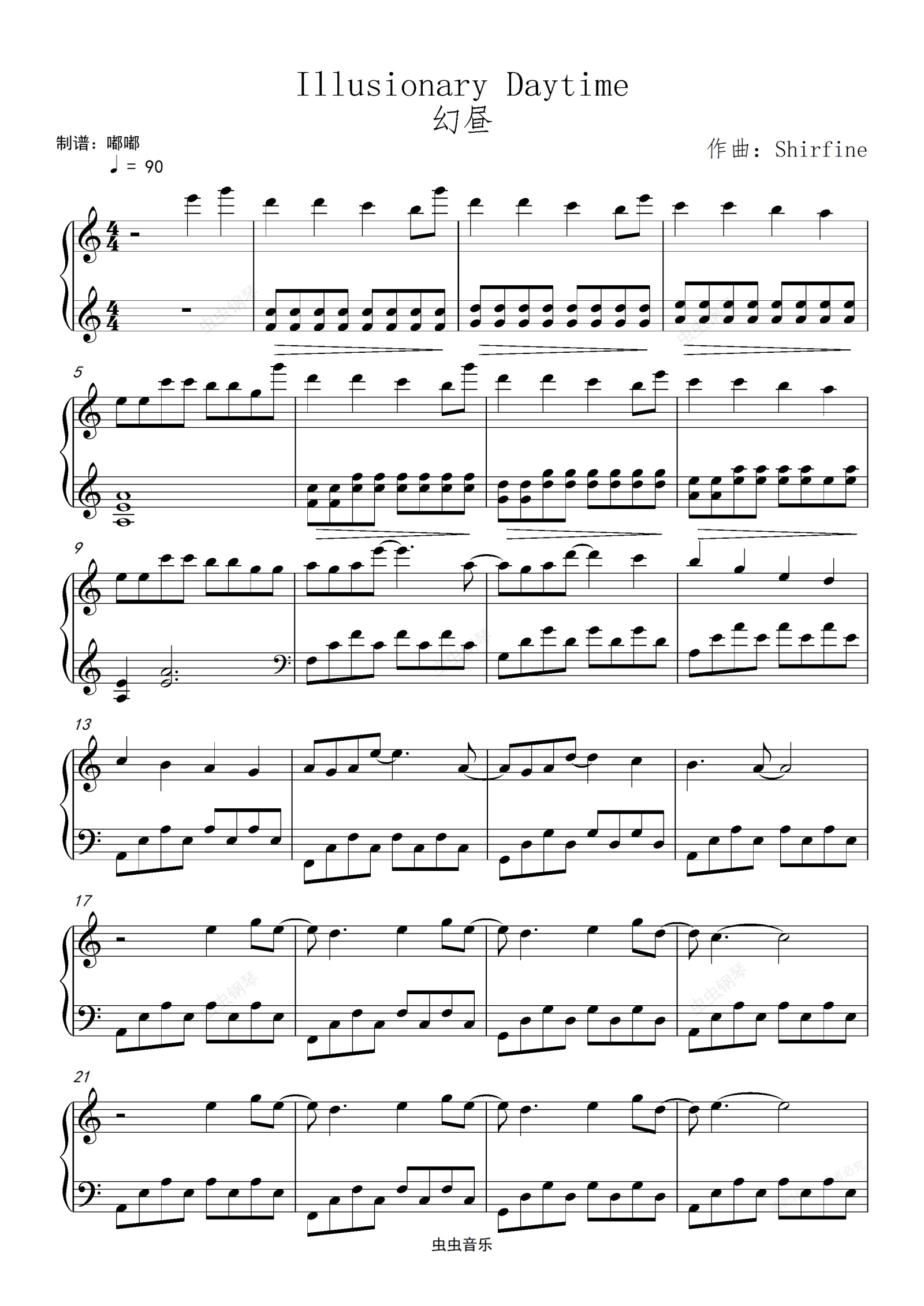 钢琴谱:Illusionary Daytime《幻昼》-原版C调