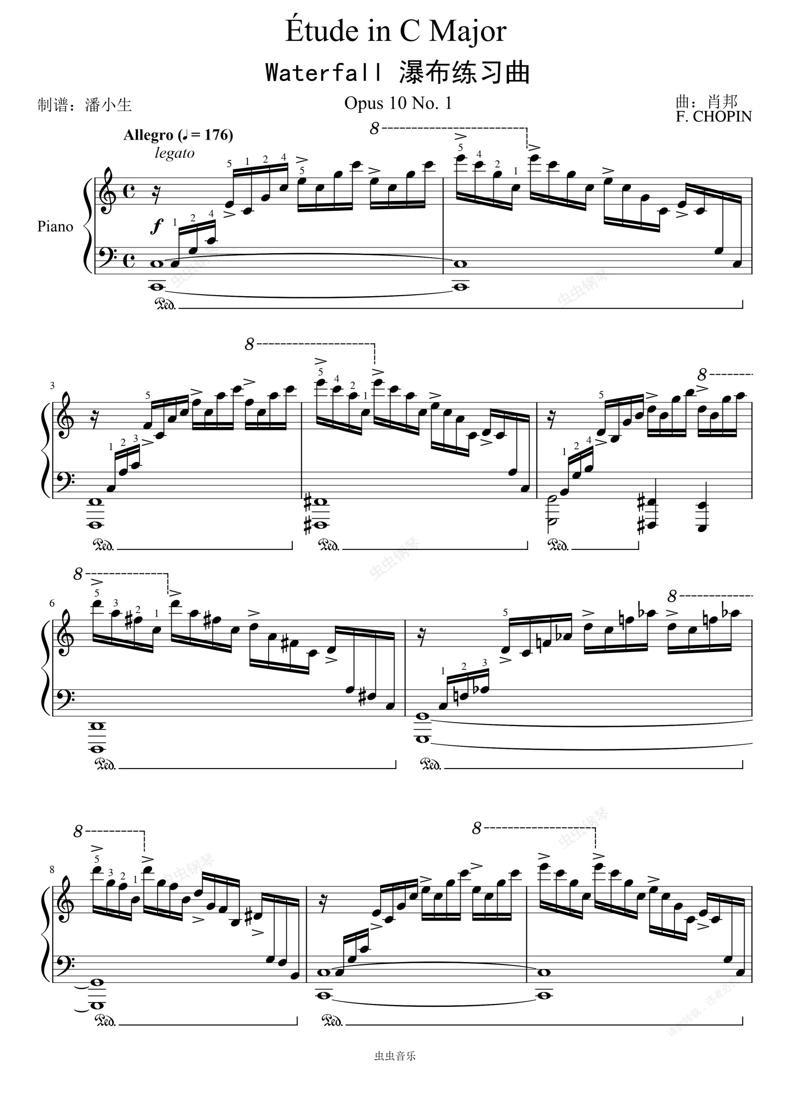 钢琴谱:肖邦 op.10 no.1 瀑布 带指法 Waterfall C大调 练习曲 12 ETUDES 原版重制