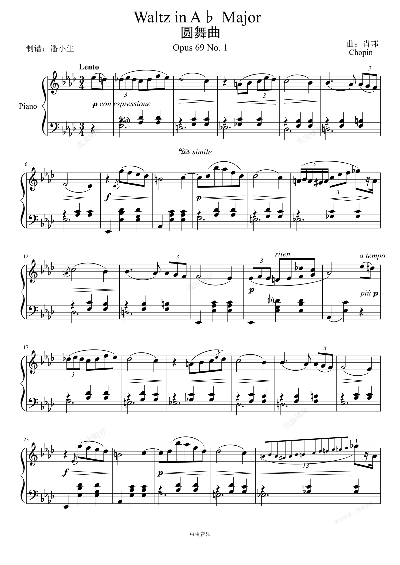 钢琴谱:肖邦 降A大调 离别 圆舞曲 Op. 69 No. 1 原版重制