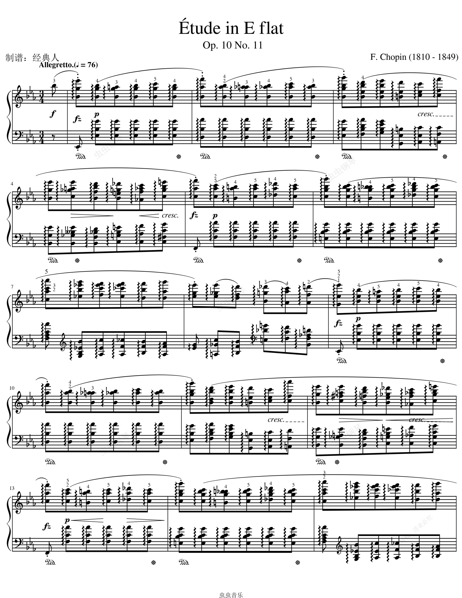 钢琴谱:Etudes, Op.10 No.11 in E flat-Chopin 肖邦练习曲 肖邦降E大调练习曲 作品10第十一首(第十一)Arpeggio