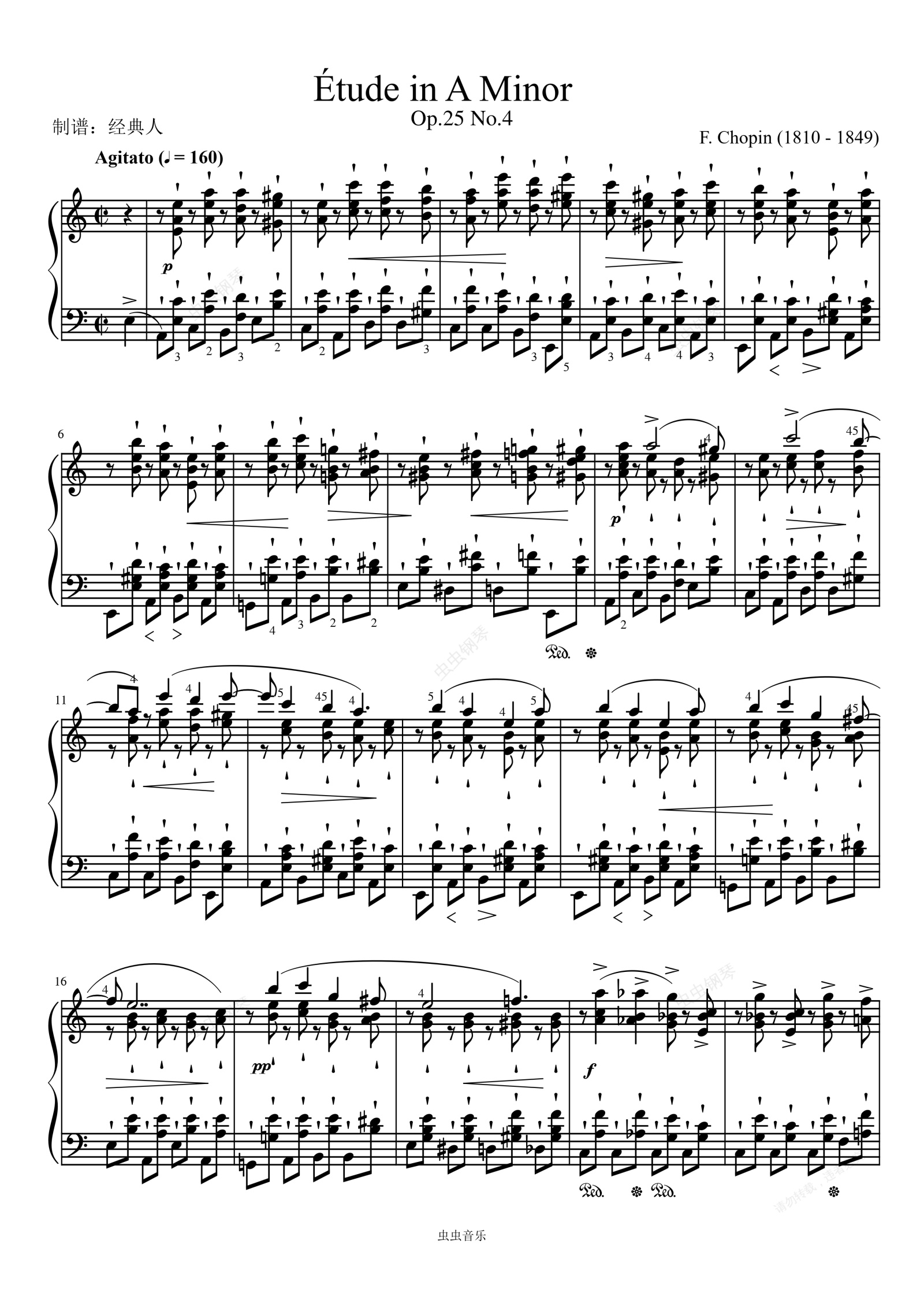 钢琴谱:Etudes, Op.25 No.4 in A minor-Chopin 肖邦练习曲 肖邦a小调练习曲 作品25第4首(第4号)