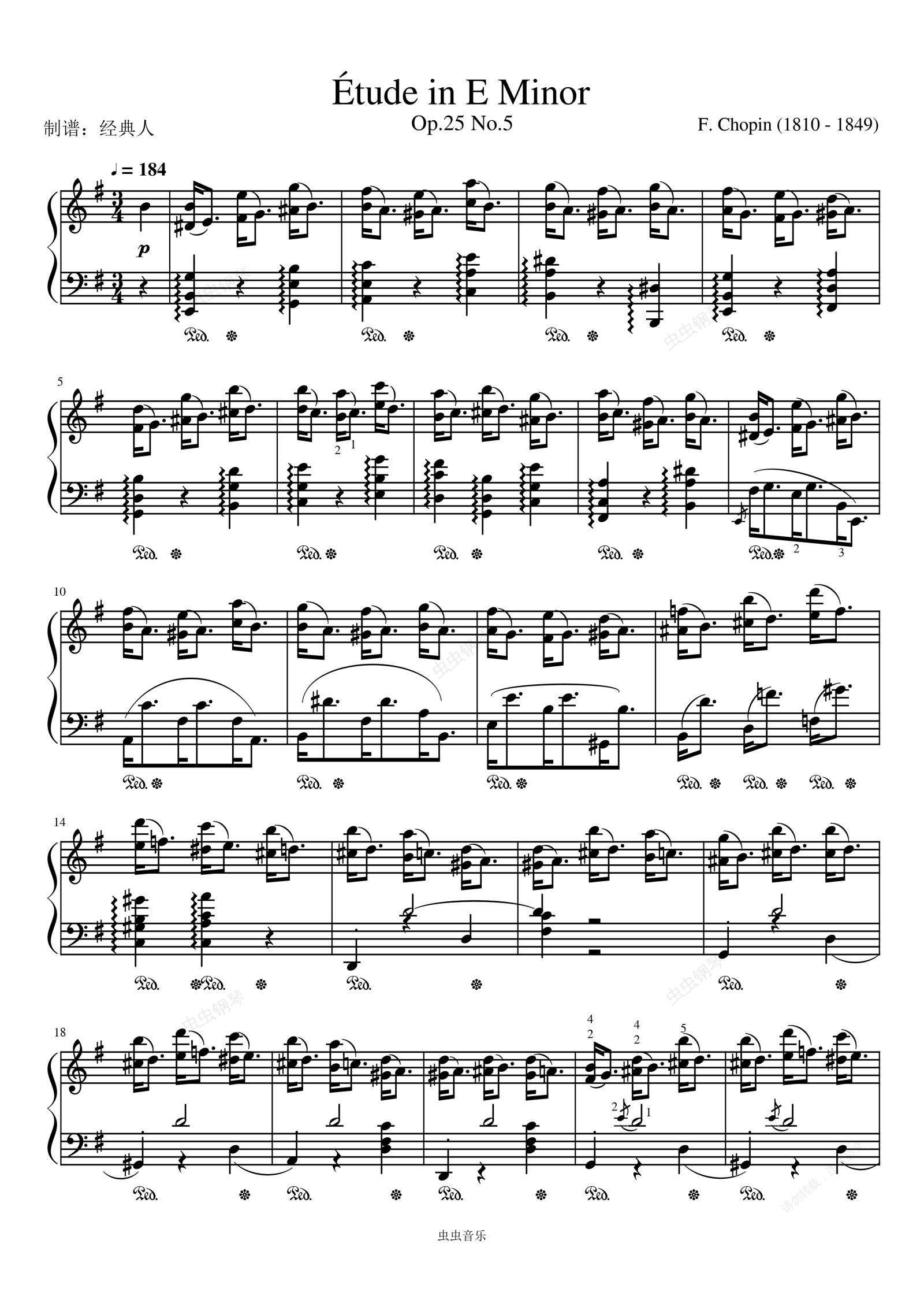 钢琴谱:Etudes, Op.25 No.5 in E minor-Chopin 肖邦练习曲 肖邦e小调练习曲 作品25第5首(第5号)Wrong Note