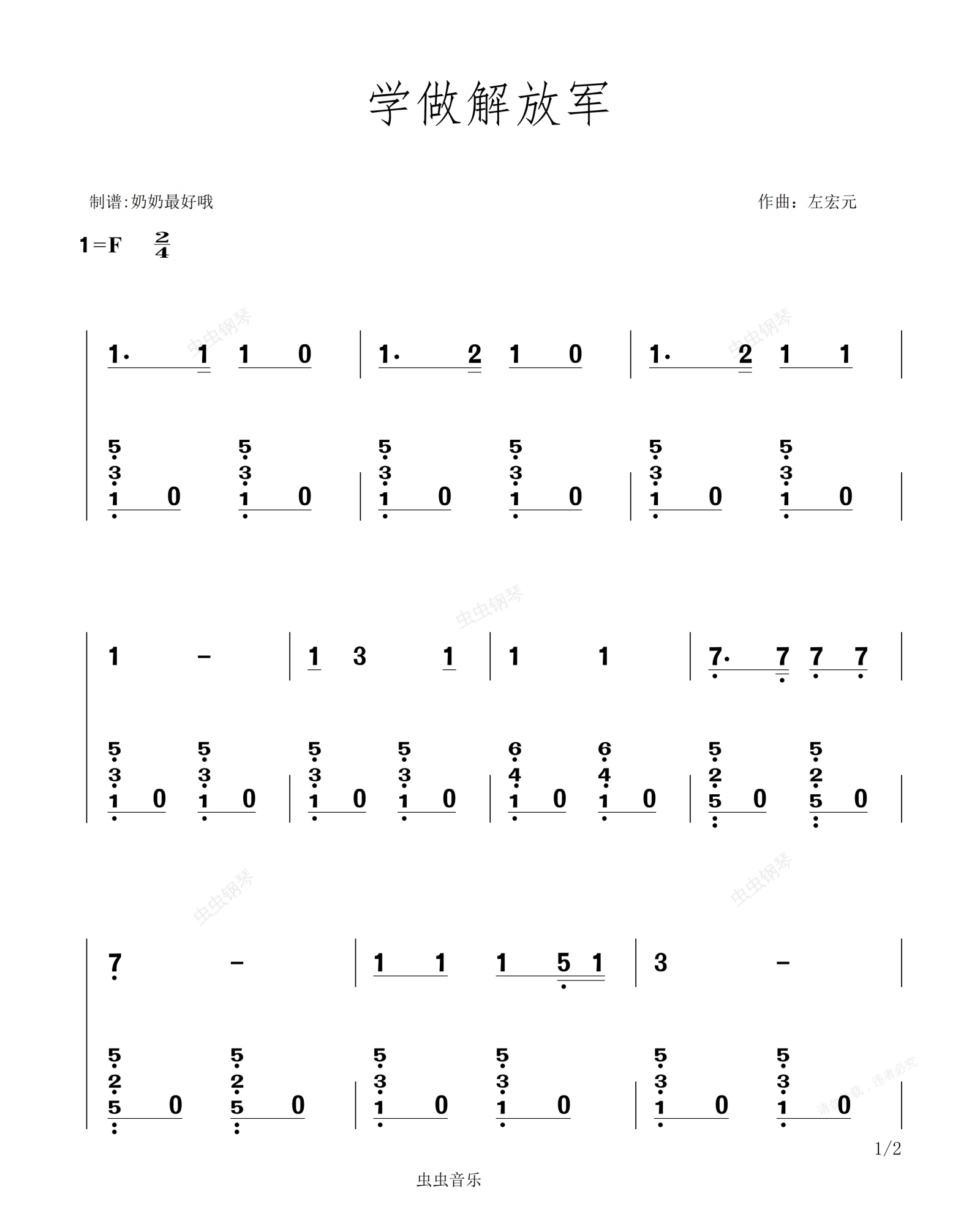 钢琴谱:学做解放军