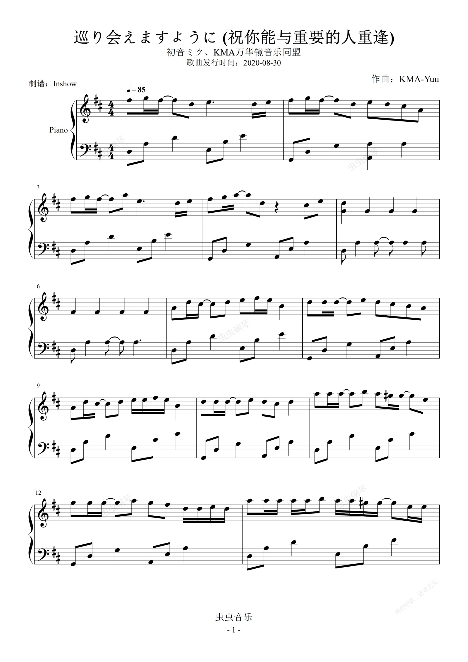 钢琴谱:巡り会えますように (祝你能与重要的人重逢)【独奏谱】
