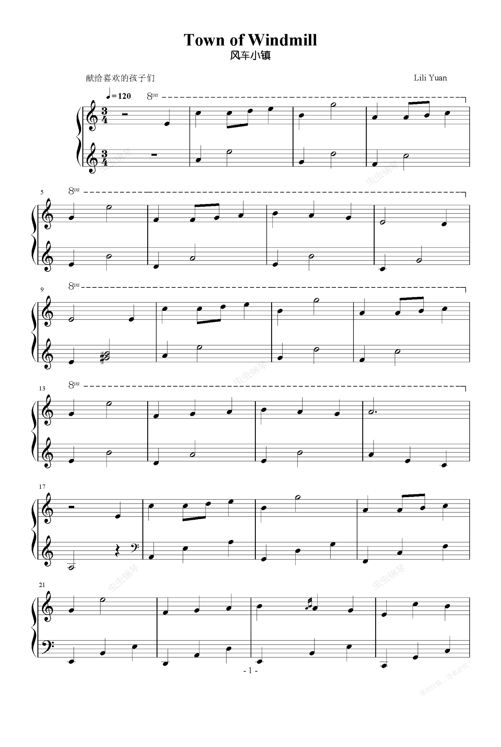 钢琴谱:Town of Windmill 风车小镇 C调(LY)