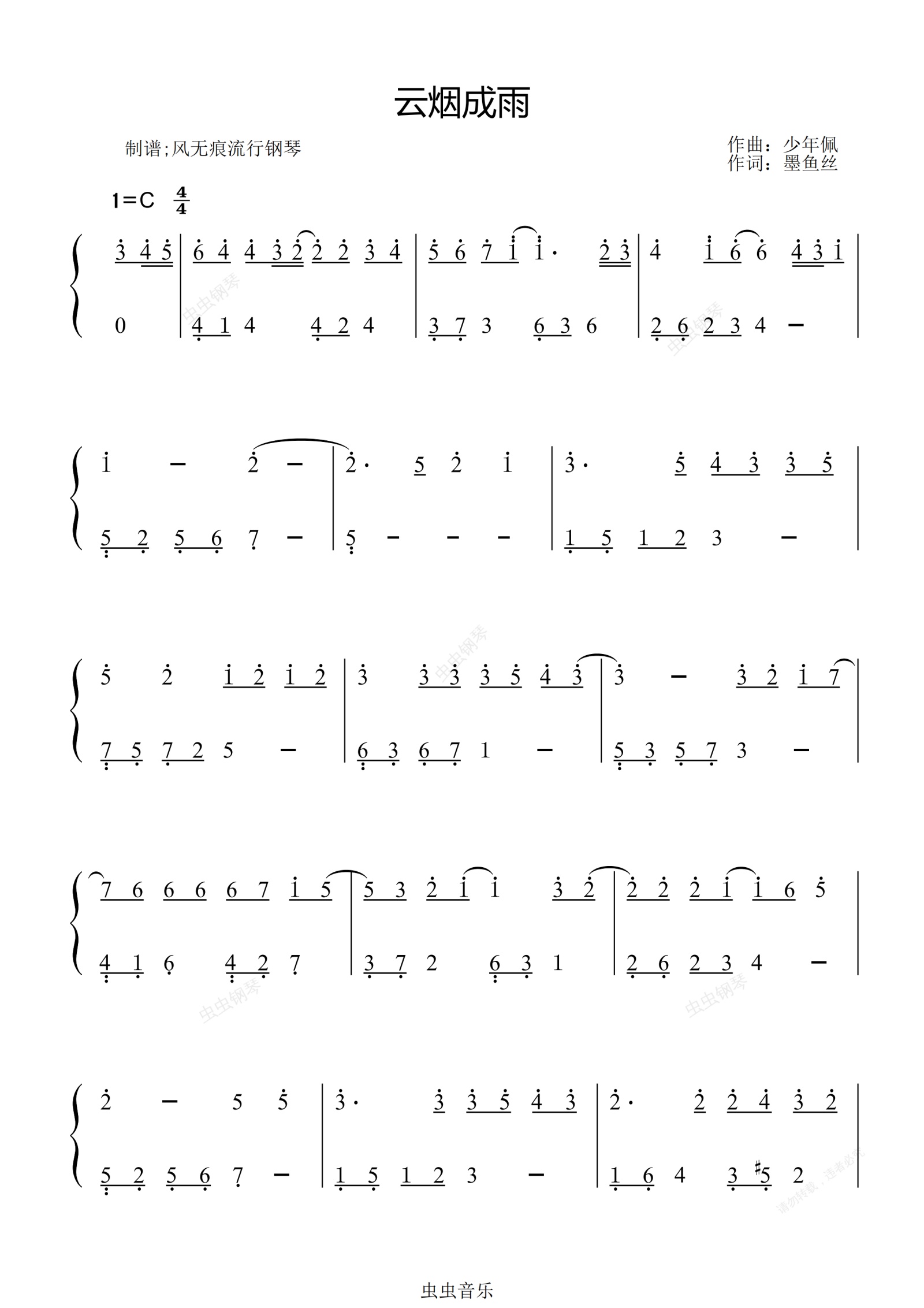 钢琴谱:云烟成雨-房东的猫〖数字简谱〗