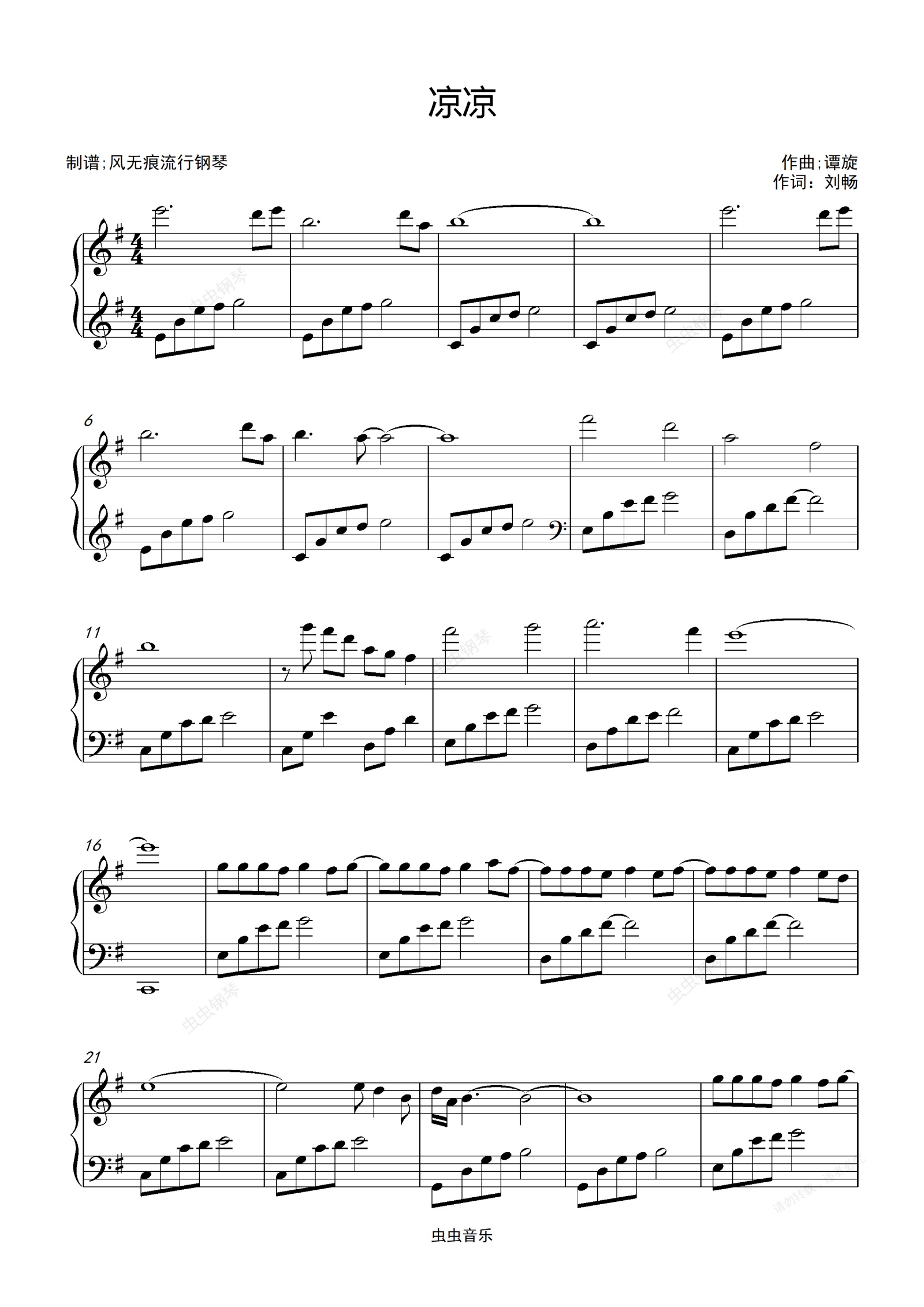 钢琴谱:凉凉-杨宗纬/张碧晨〖简易动听〗