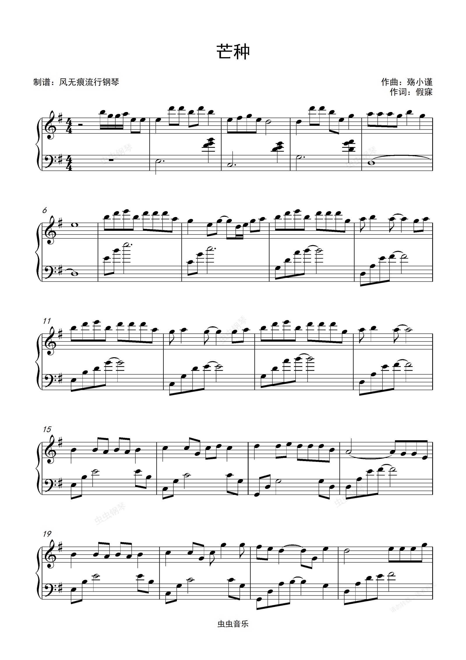 钢琴谱:芒种-音阙诗听/赵方婧〖简易动听〗