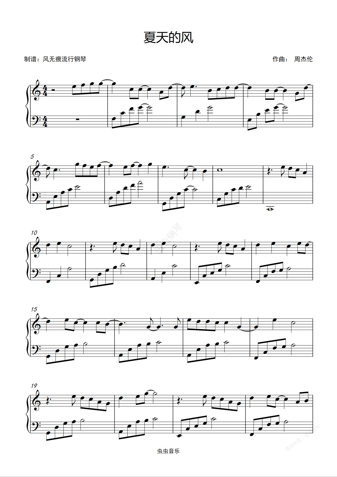 钢琴谱:夏天的风-温岚〖简易动听〗