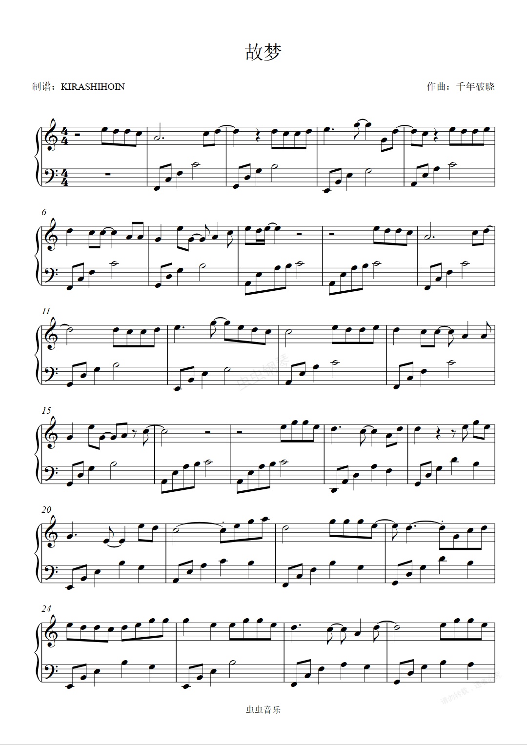 钢琴谱:故梦