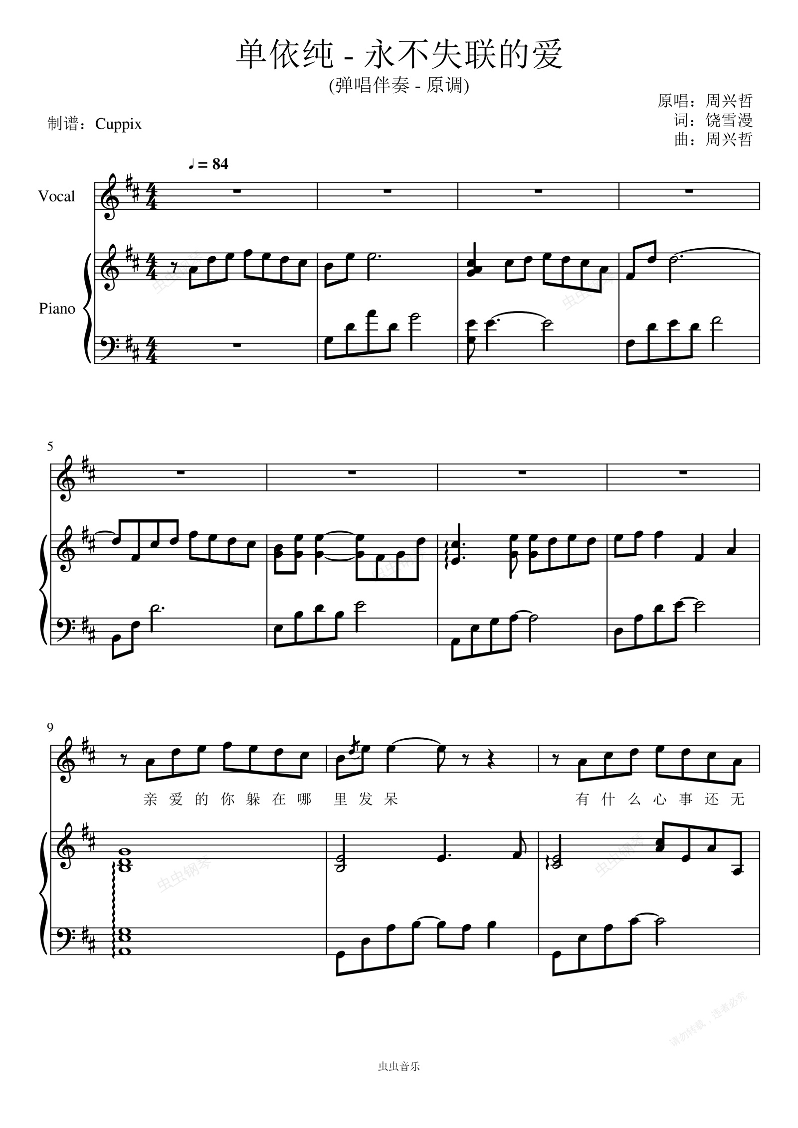 钢琴谱:单依纯《永不失联的爱》高度还原 弹唱伴奏附词-原调(2020中国好声音)