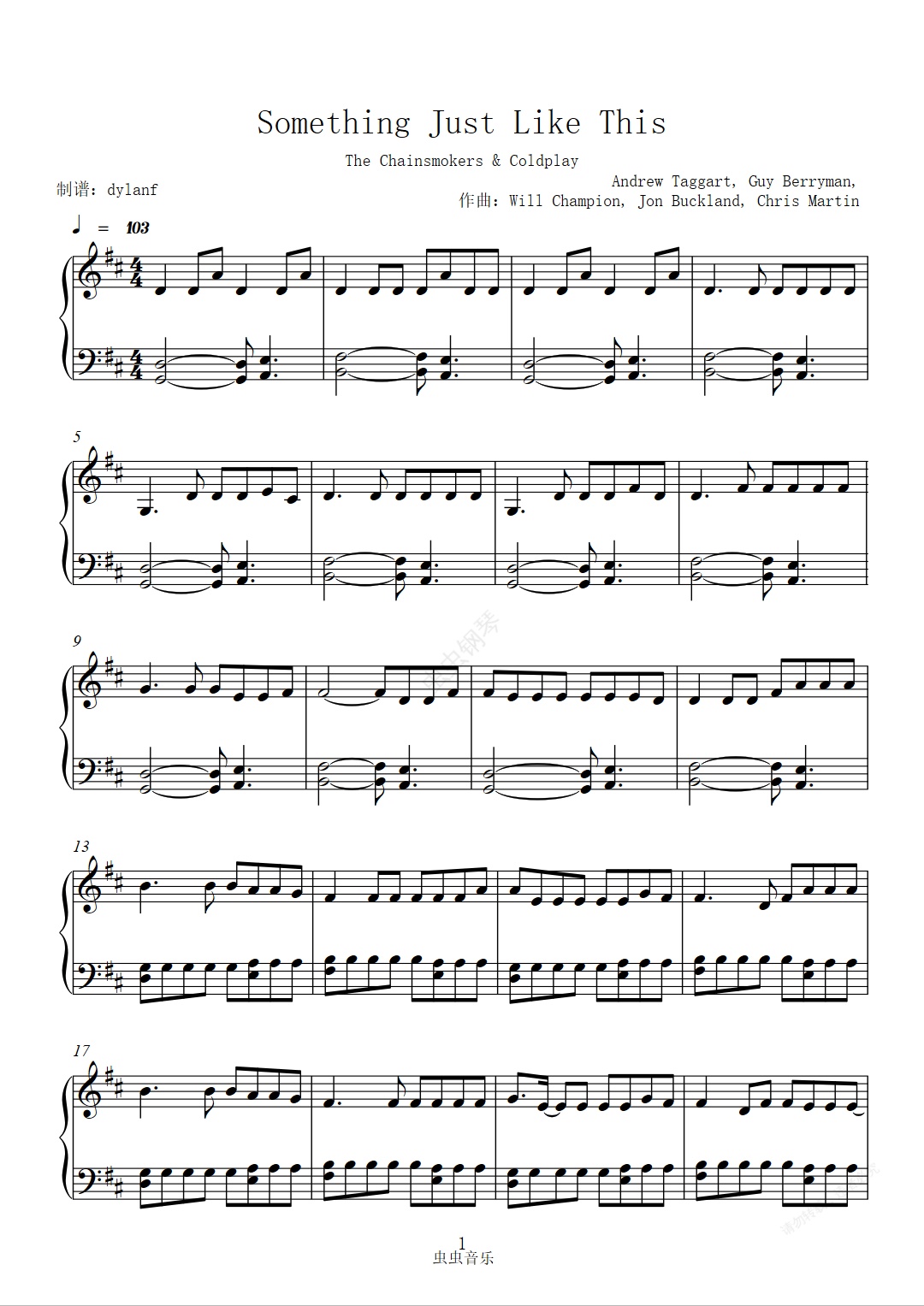 钢琴谱:原调Something Just Like This 烟鬼The Chainsmokers&Coldplay