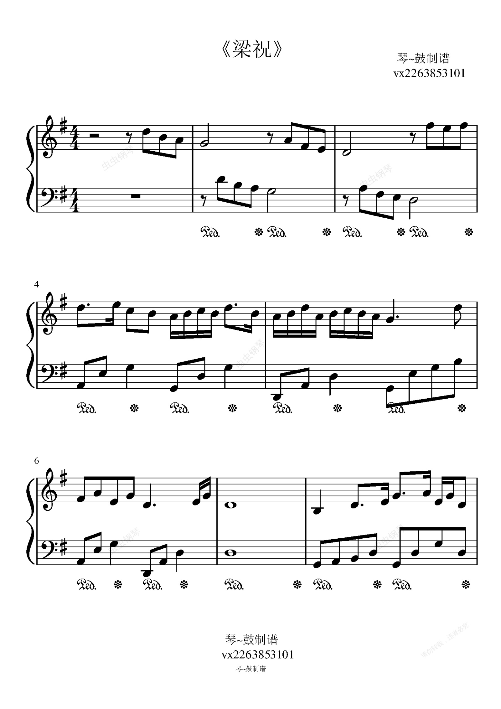钢琴谱:梁祝 精简版 琴鼓制谱