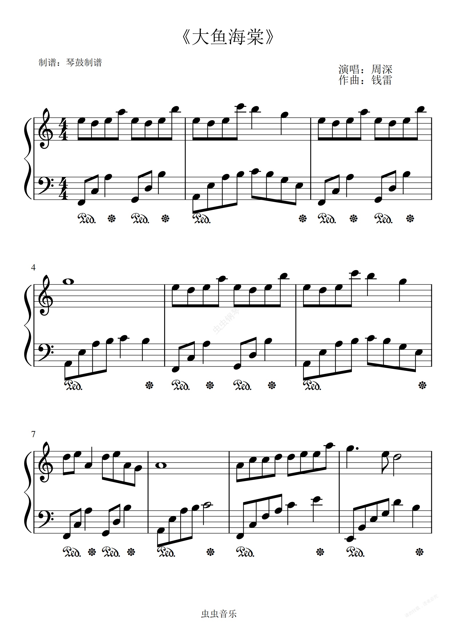 钢琴谱:大鱼海棠 大鱼 琴鼓制谱 精简C调版本