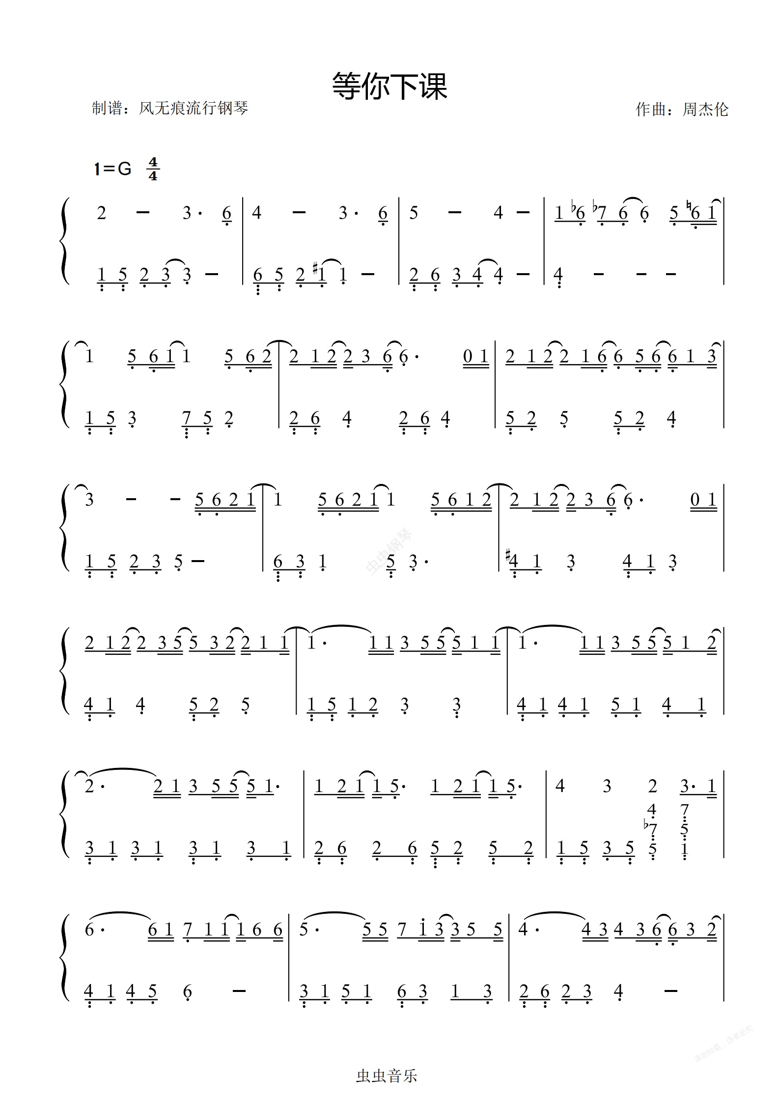 钢琴谱:等你下课-周杰伦〖数字简谱〗