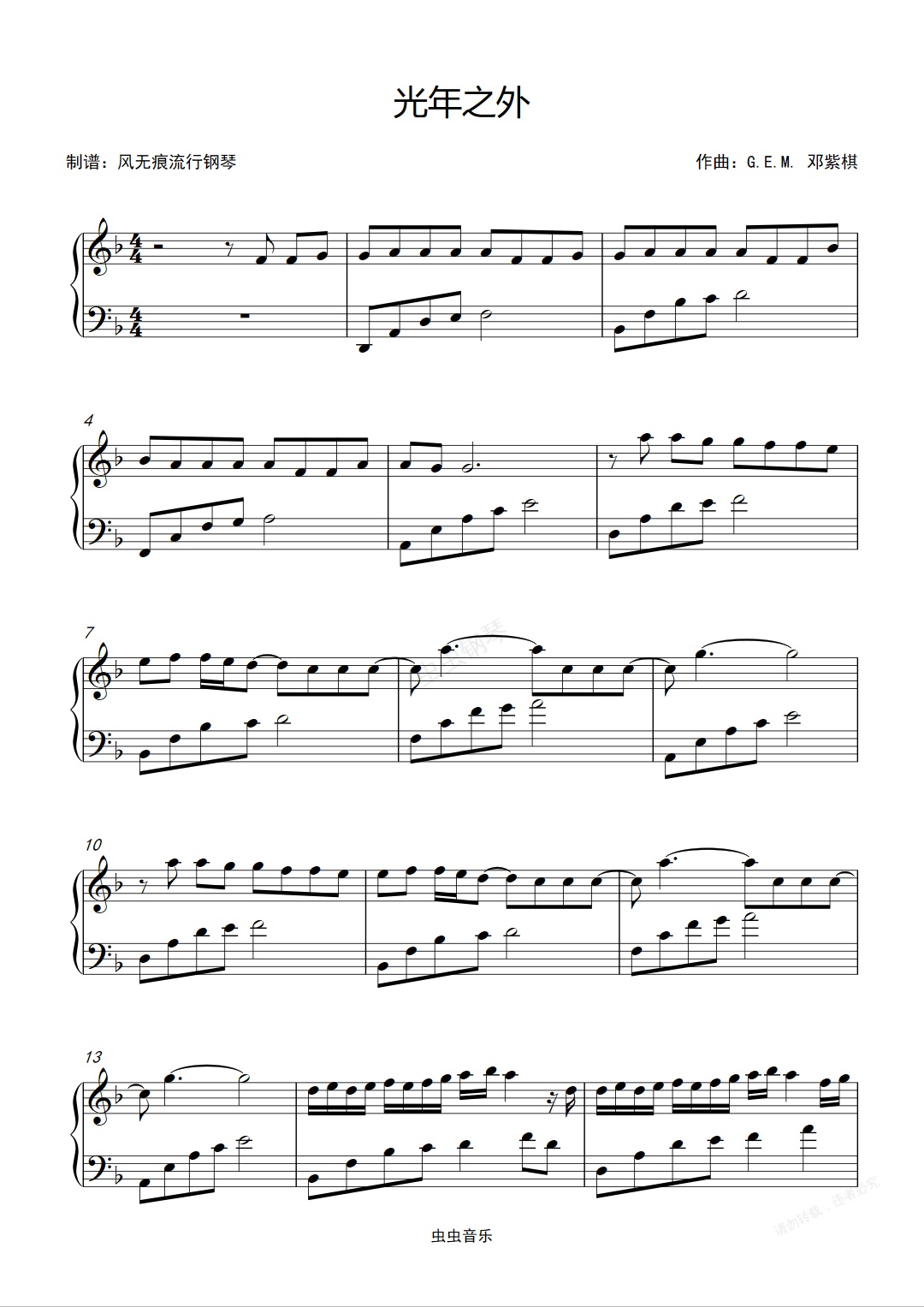 钢琴谱:光年之外-邓紫棋〖简易动听〗