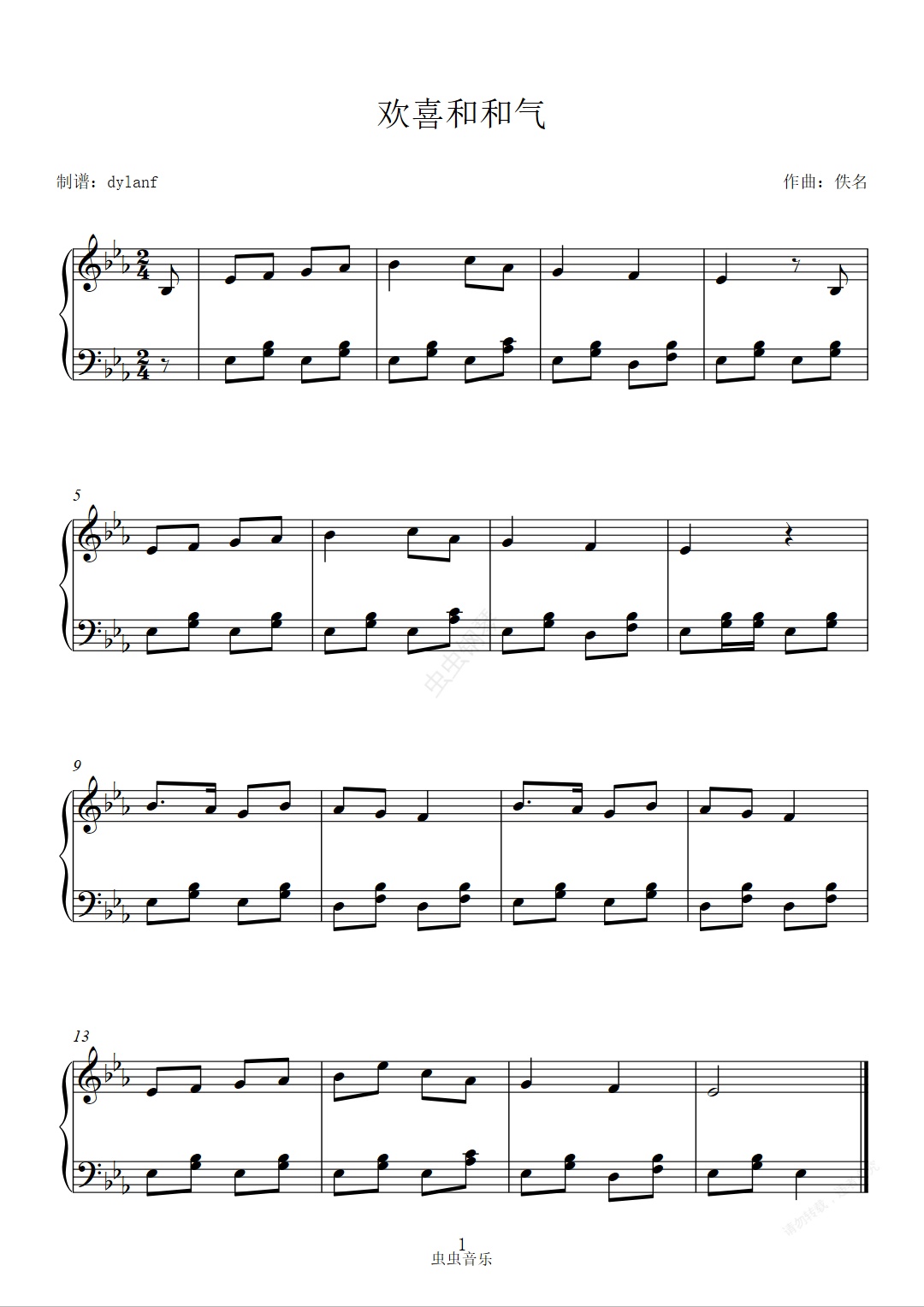 钢琴谱:欢喜和和气 经典儿歌 琴童专用