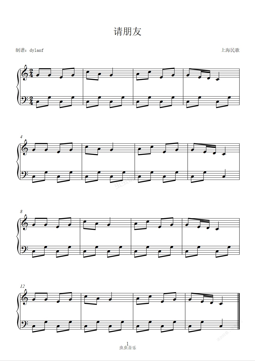 钢琴谱:请朋友 经典儿歌 琴童专用
