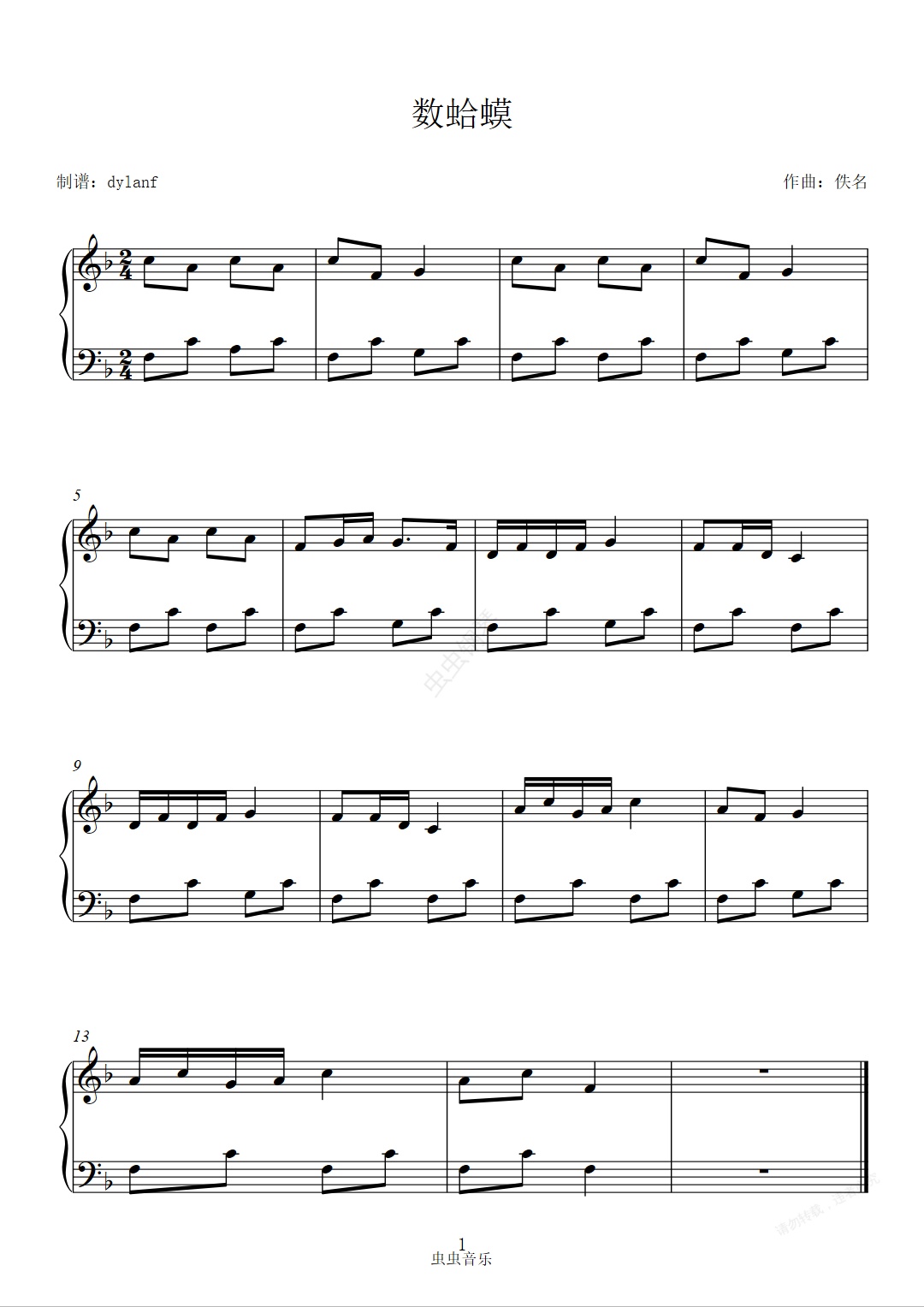 钢琴谱:数蛤蟆 经典儿歌 琴童专用