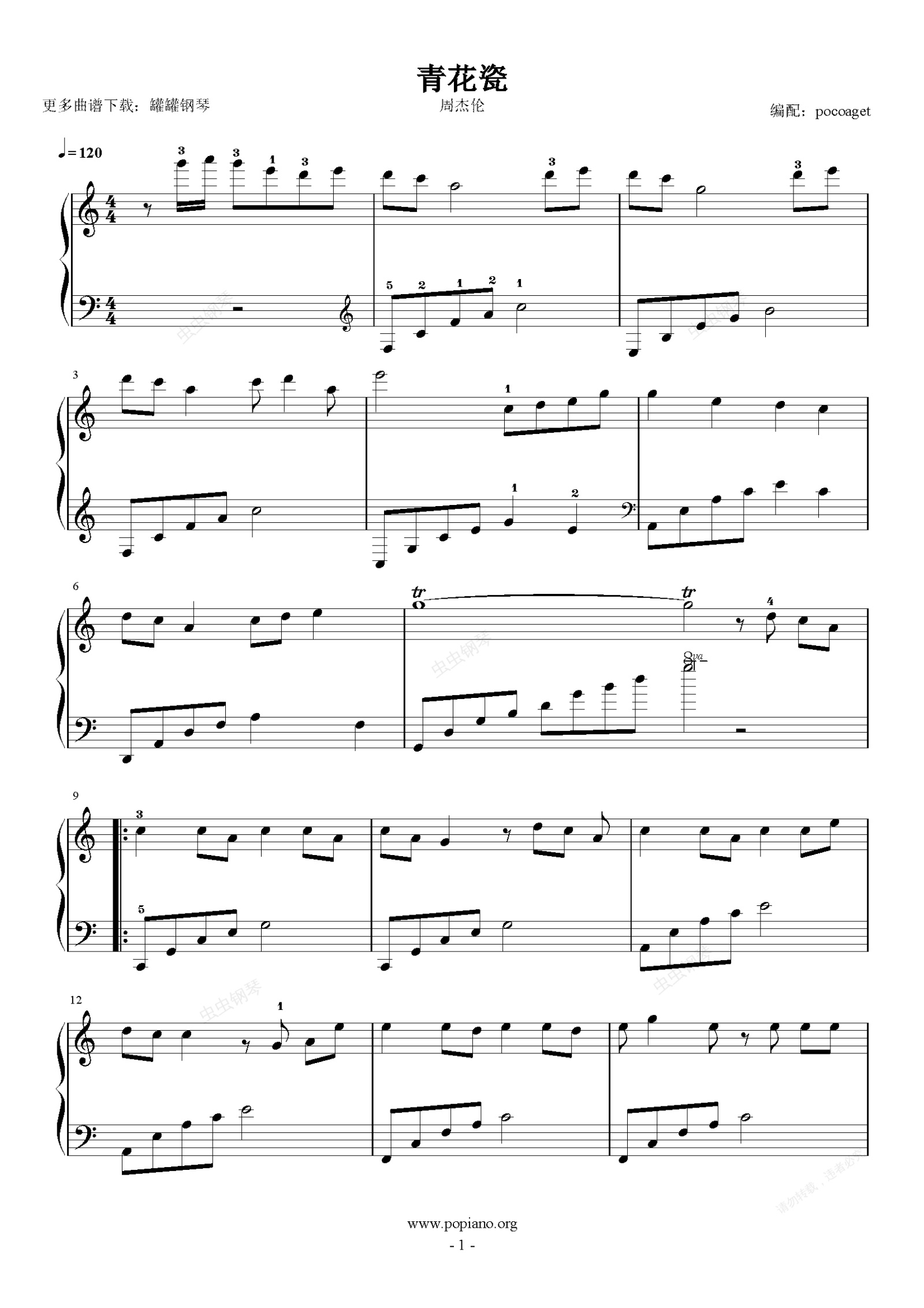 我大杰伦非常经典的一首曲子。视听的效果就是最后弹出来的效果(我反复的一遍没有弹)。注意左手有高音和低音变化。另外左手编配的时候还是考虑到难度问题,不是特别复杂!觉得难的童鞋可以自行删减,觉得简单的,可以继续跑个8分音符的下行。反复和重复的地方可以自己随意加。我的谱子你们可以当成是个完整的模板,细节处可以自己添加!喜欢欢迎关注我呦。每个谱子都有五线谱和简谱版本哦!有问题欢迎私信我!