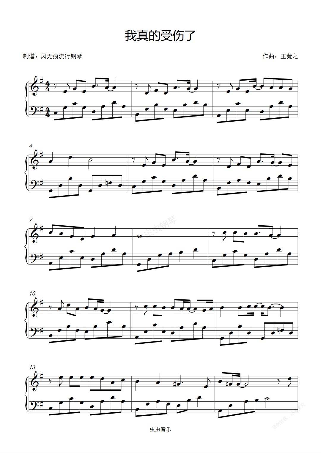 钢琴谱:我真的受伤了-张学友〖简易动听〗