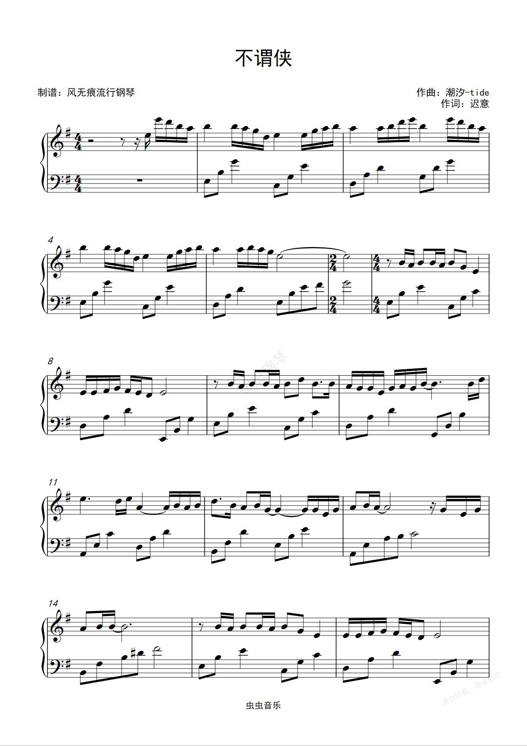 钢琴谱:不谓侠-萧忆情Alex〖简易动听〗