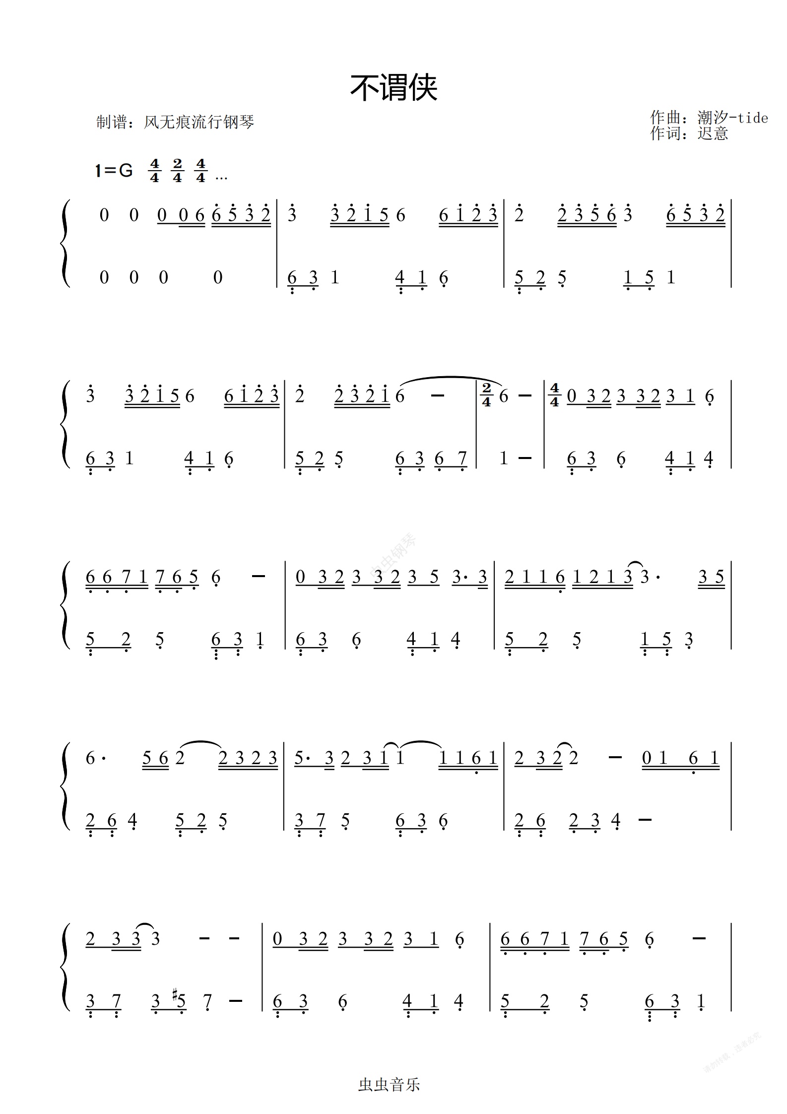 钢琴谱:不谓侠-萧忆情Alex〖数字简谱〗