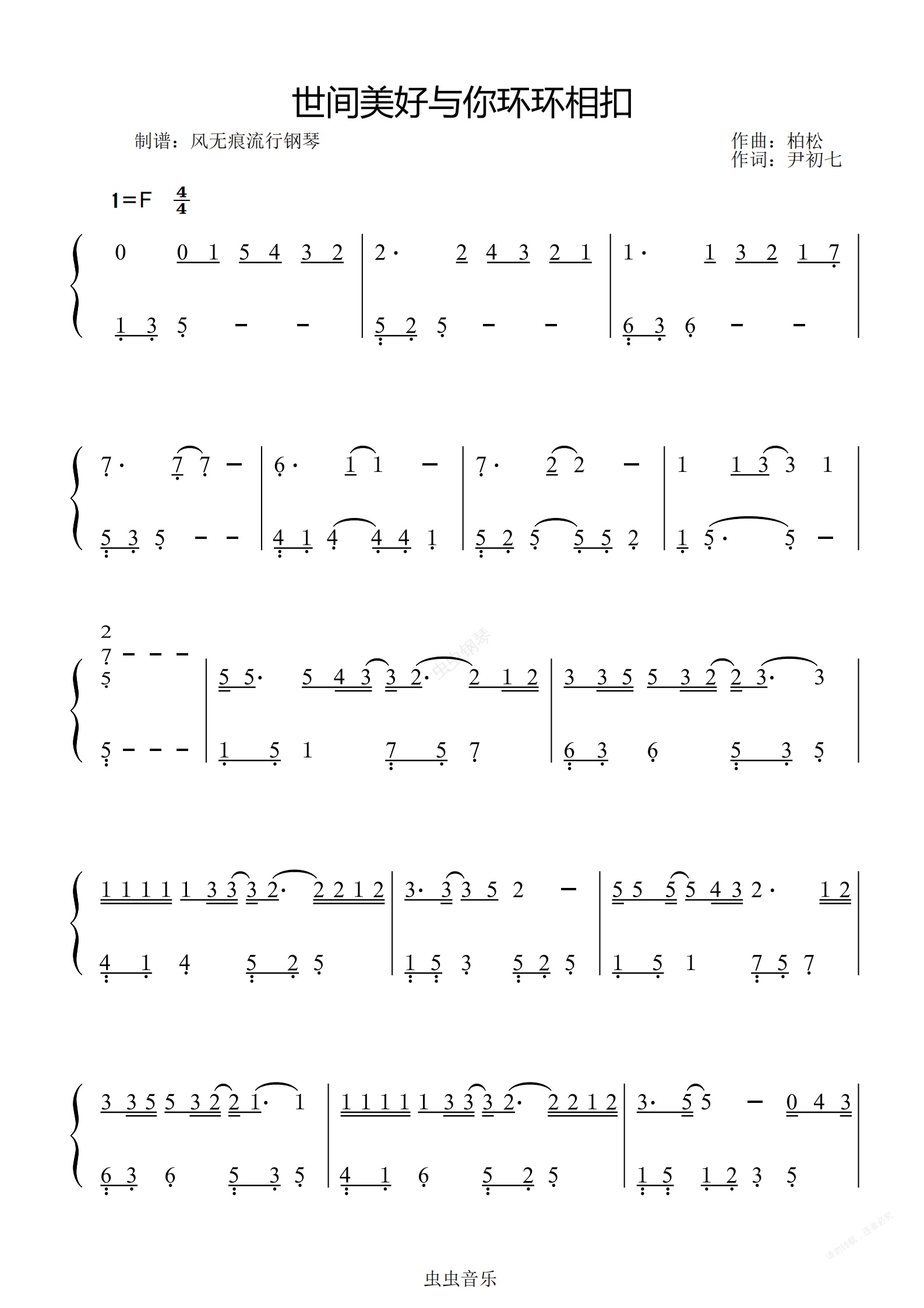 钢琴谱:世间美好与你环环相扣-柏松〖数字简谱〗