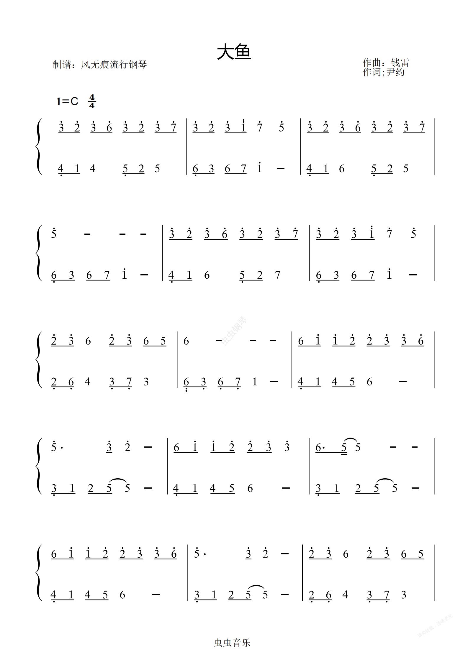 钢琴谱:大鱼-周深〖数字简谱〗
