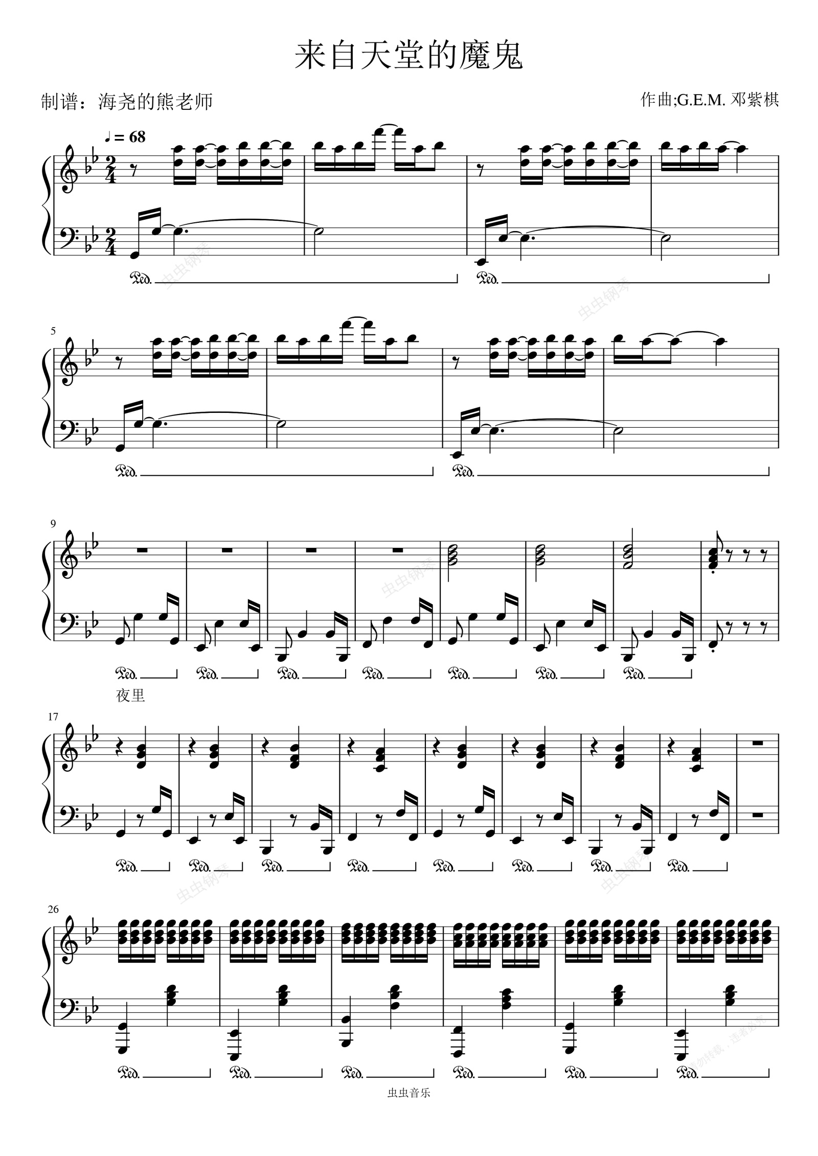 钢琴谱:来自天堂的魔鬼 燃情弹唱版