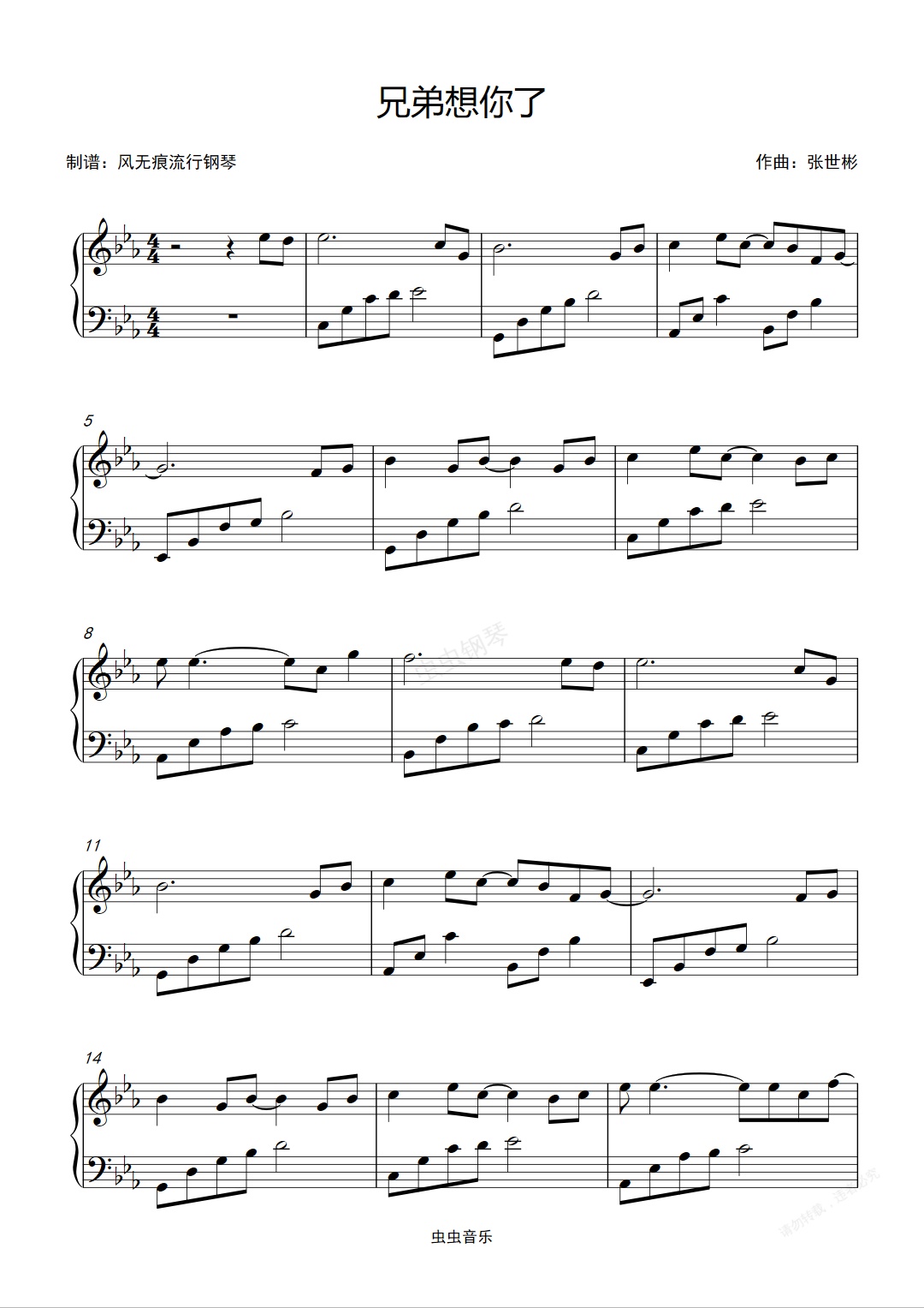 钢琴谱:兄弟想你了-姜鹏〖简易动听〗