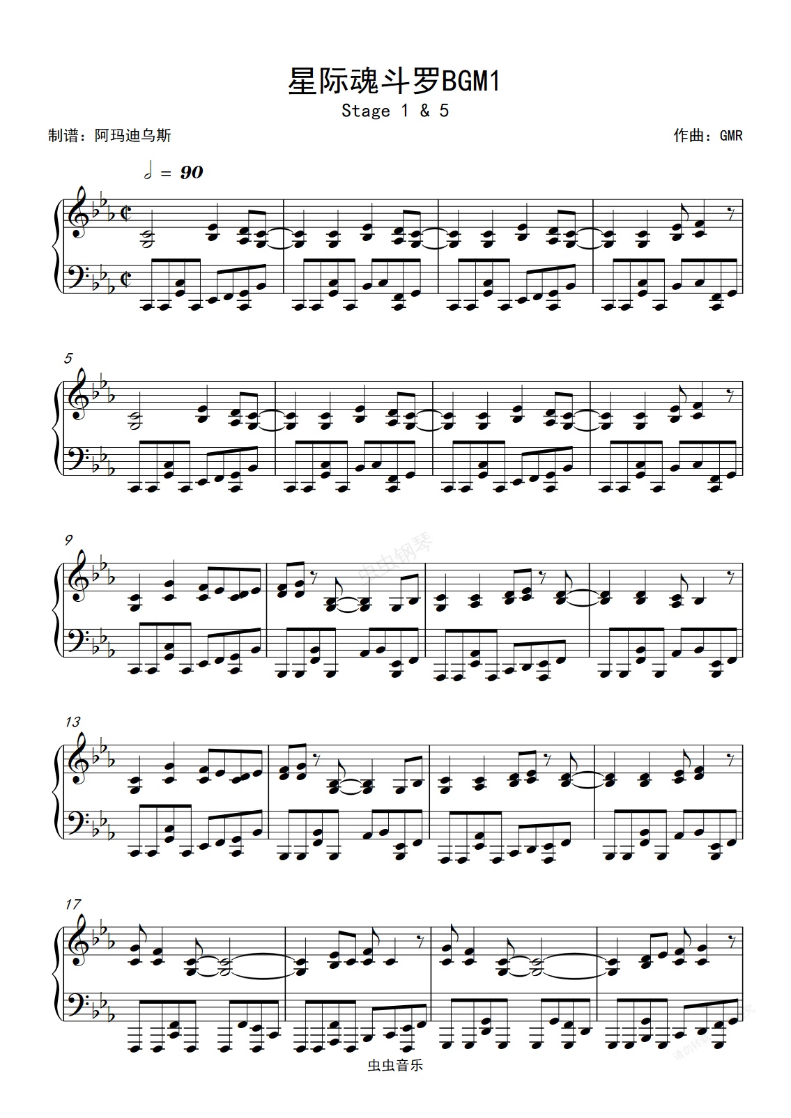 钢琴谱:FC <星际魂斗罗> Stage 1 & 5
