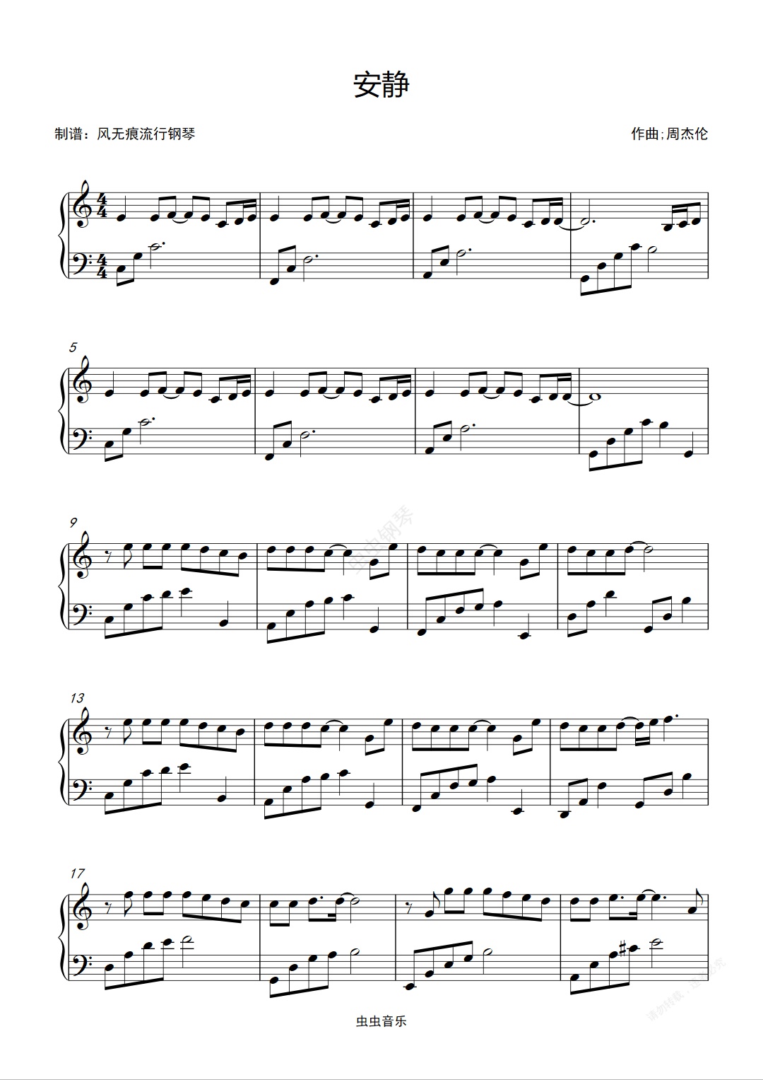 钢琴谱:安静-周杰伦〖简易动听〗