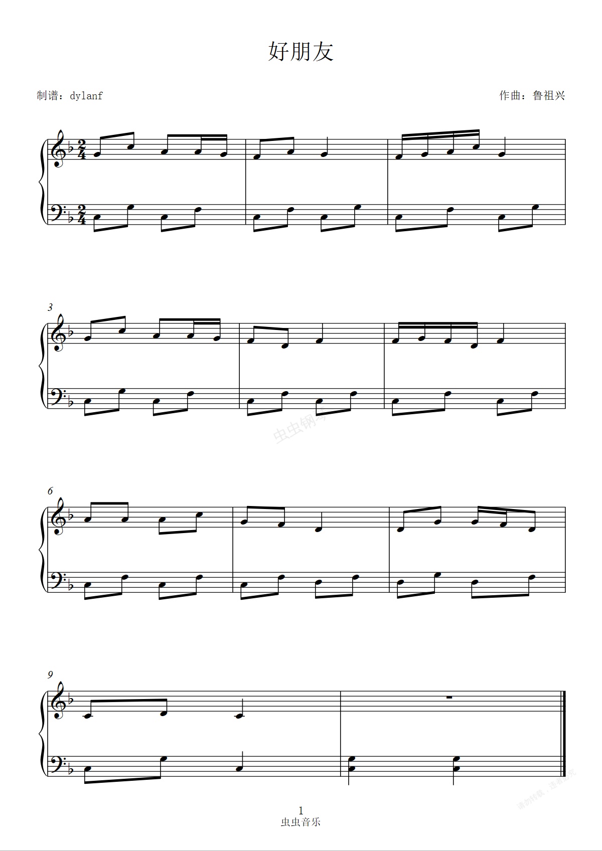 钢琴谱:好朋友 经典儿歌 琴童专用
