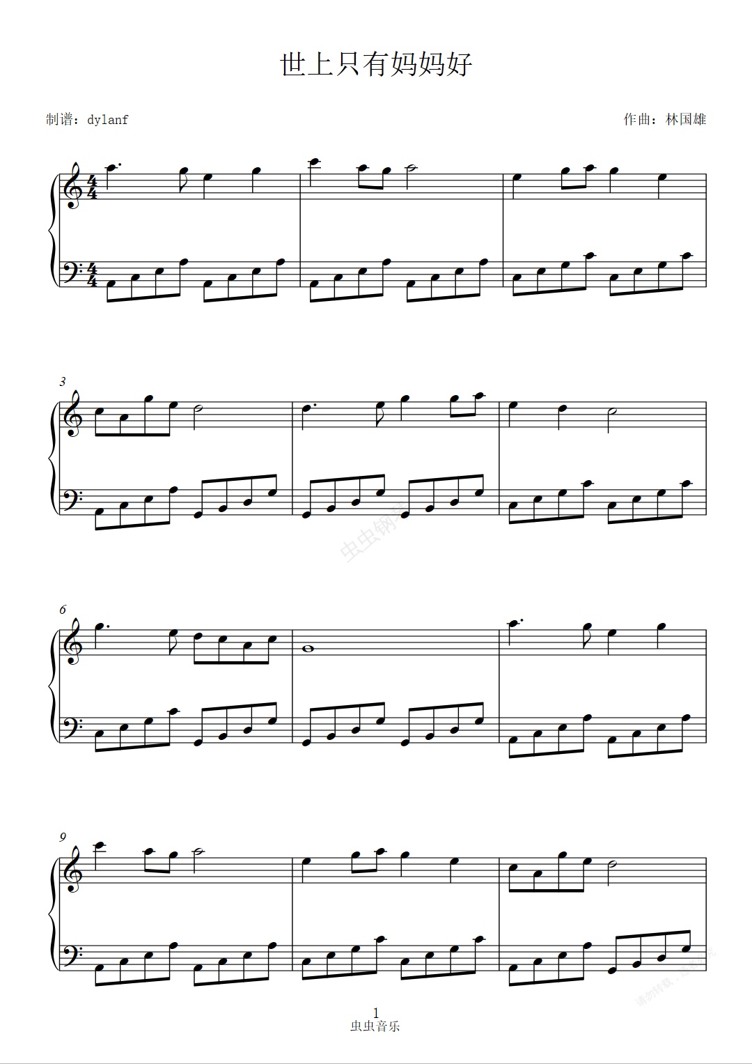钢琴谱:世上只有妈妈好 经典儿歌 琴童专用