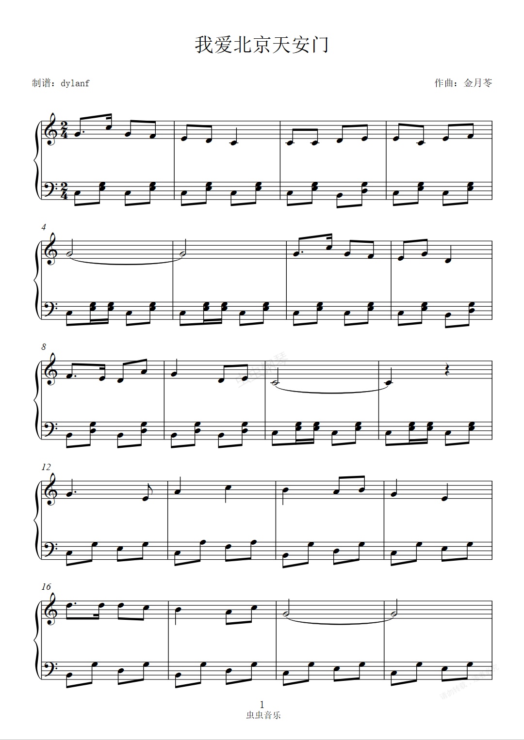钢琴谱:我爱北京天安门 经典儿歌 琴童专用
