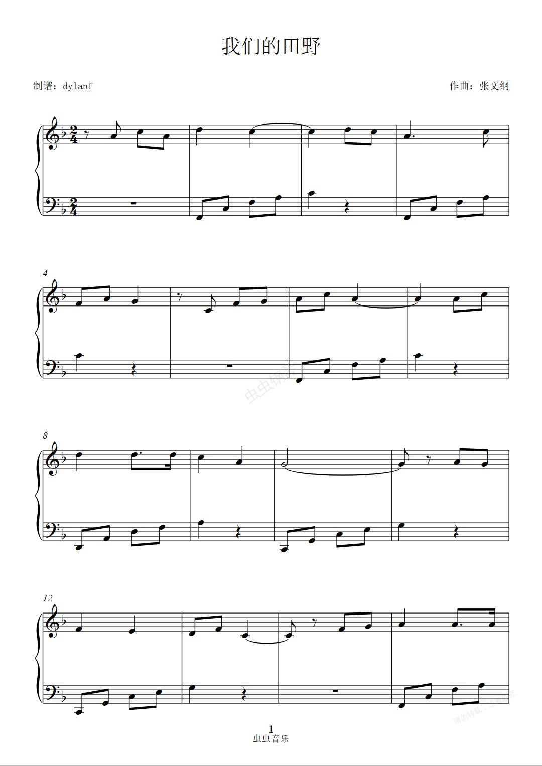 钢琴谱:我们的田野 经典儿歌 琴童专用