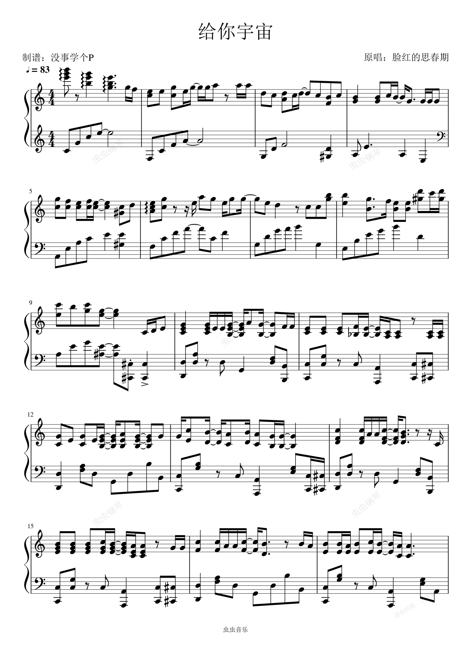 钢琴谱:给你宇宙-脸红的思春期   高度还原钢琴独奏谱