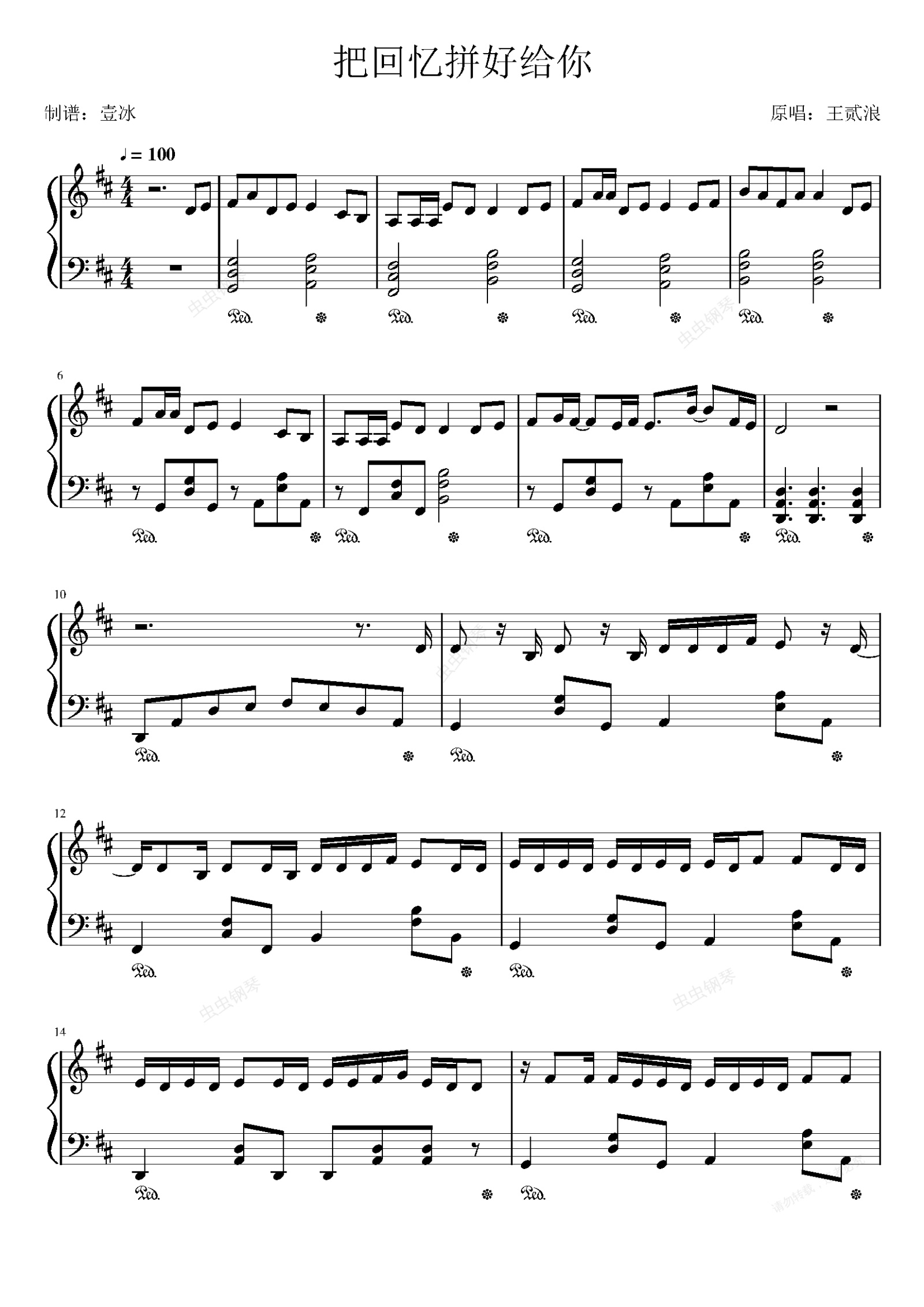 钢琴谱:把回忆拼好给你//王贰浪-壹冰钢琴版