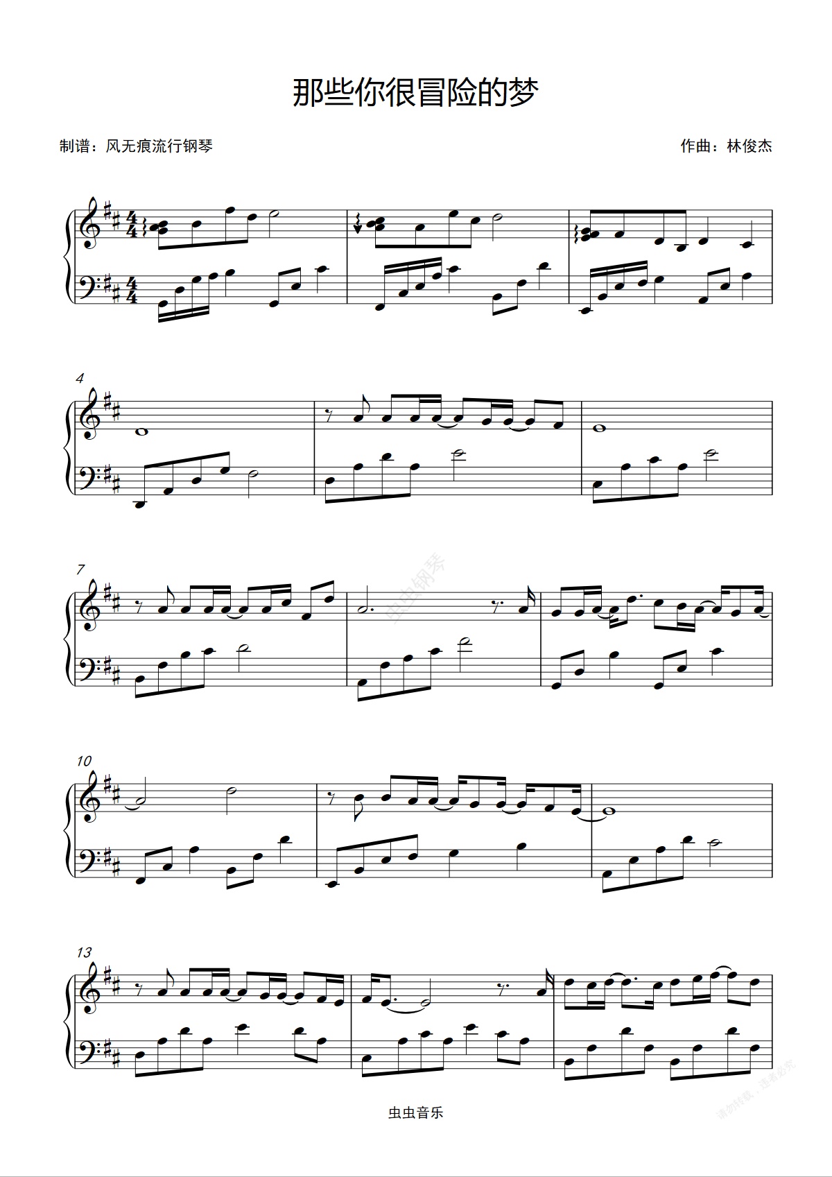 钢琴谱:那些你很冒险的梦-林俊杰〖简易动听〗