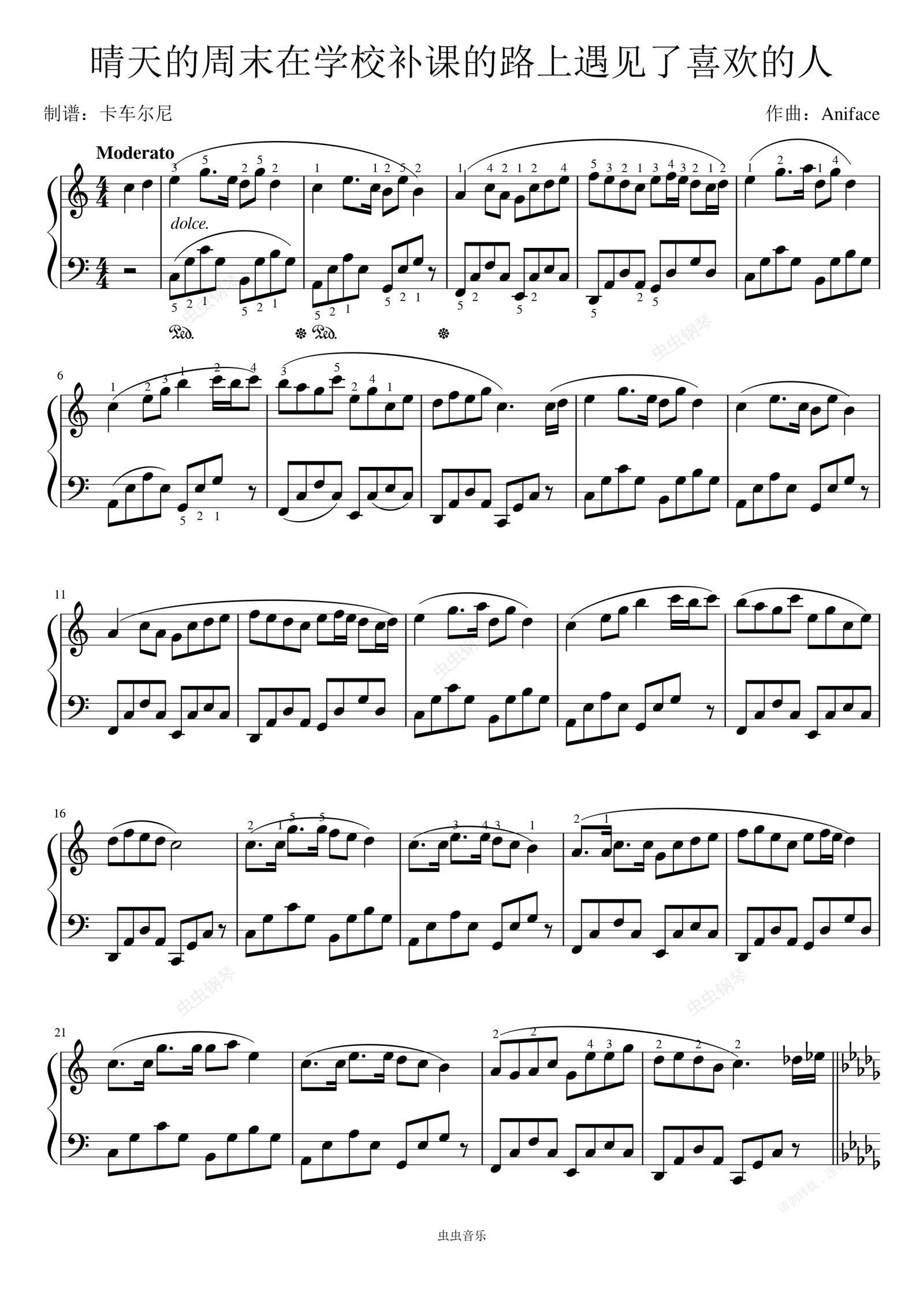 钢琴谱:晴天的周末在学校补课的路上遇见了喜欢的人 钢琴唯美演奏版 车老师编配
