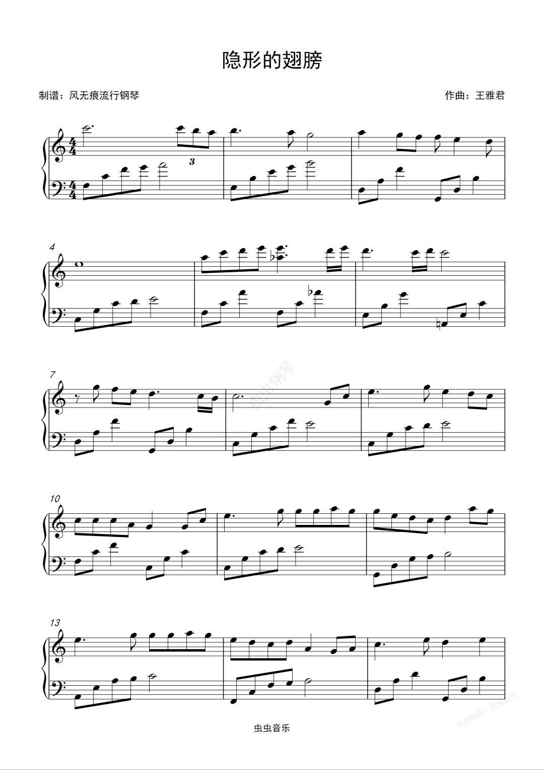 钢琴谱:隐形的翅膀-张韶涵〖简易动听〗
