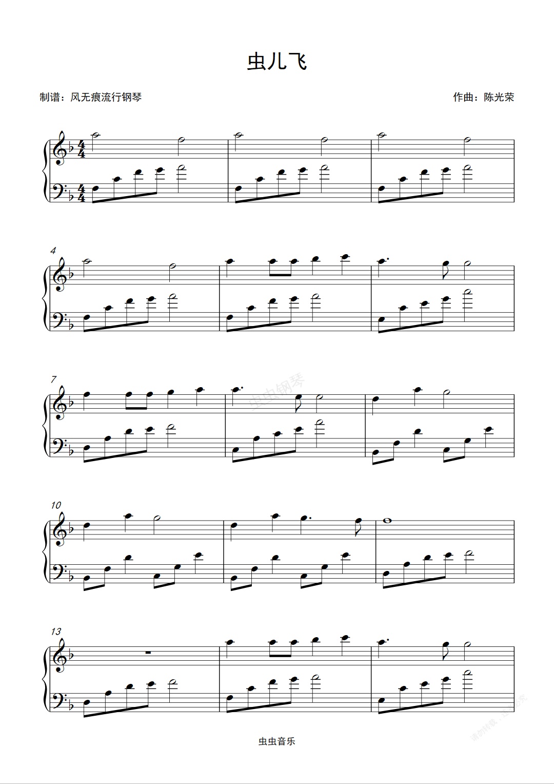 钢琴谱:虫儿飞-郑伊健〖简易动听〗