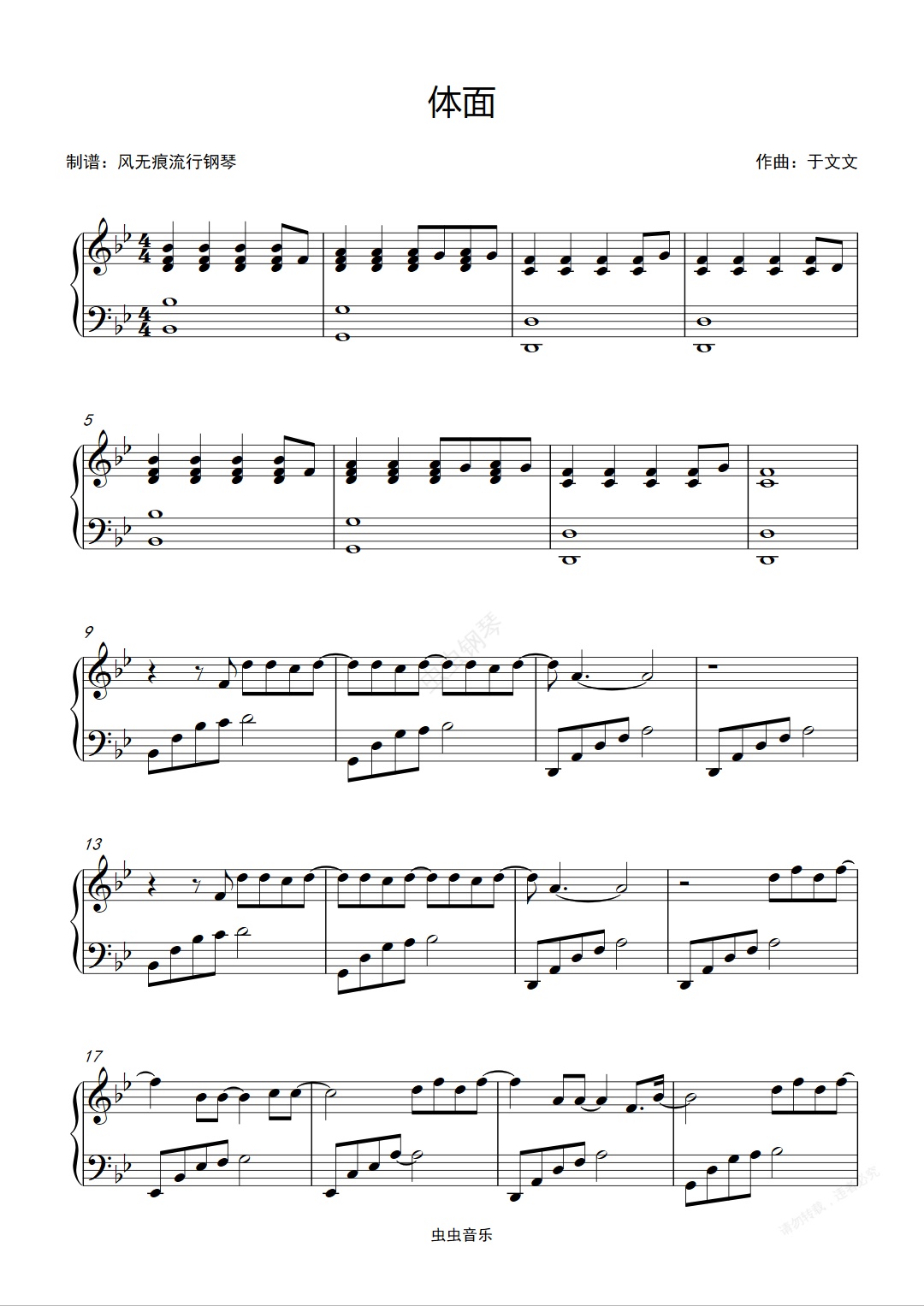 钢琴谱:体面-于文文〖简易动听〗