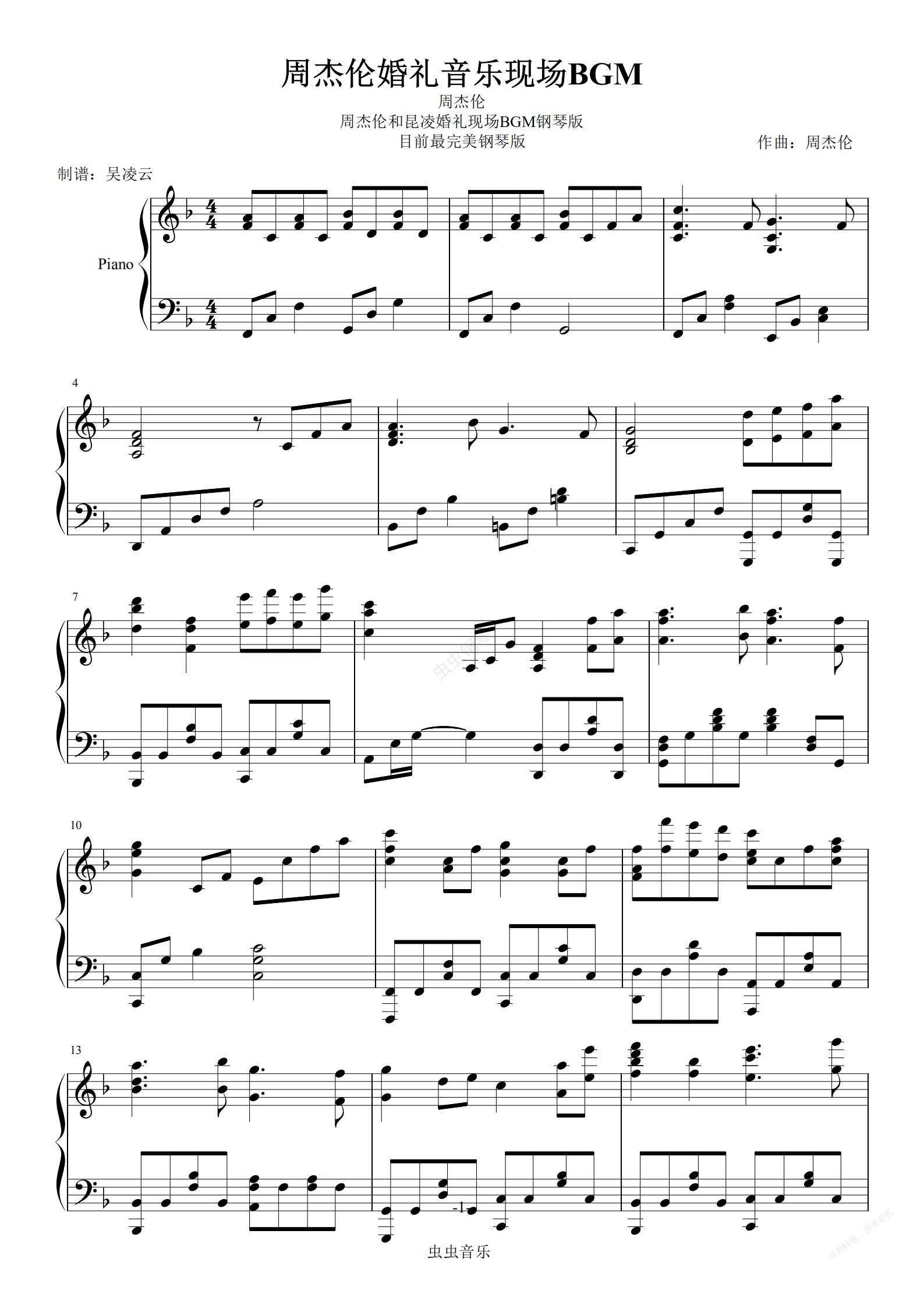 钢琴谱:周杰伦婚礼音乐现场BGM完美钢琴演奏版 吴凌云制谱